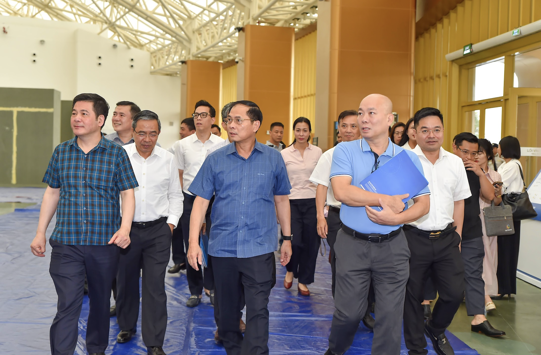 Phó Thủ tướng Bùi Thanh Sơn đi kiểm tra tiến độ Hội chợ Mùa Thu 2025. Ảnh: MOIT