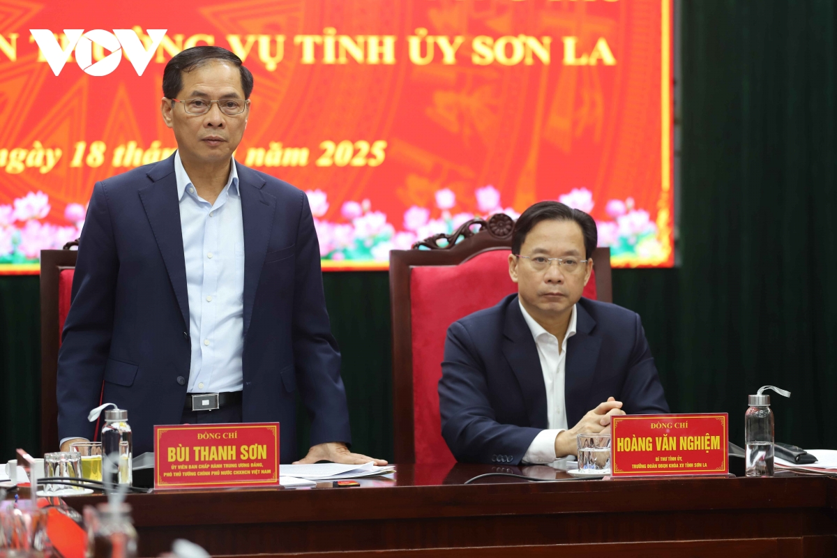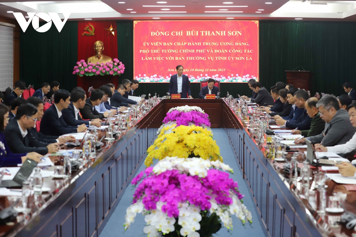 Phát biểu tại cuộc làm việc, Phó Thủ tướng Chính phủ Bùi Thanh Sơn ghi nhận và đánh giá cao nỗ lực, kết quả toàn diện của tỉnh Sơn La thời gian qua, nhất là trong công tác thu hút đầu tư, đầu tư công nghiệp chế biến, ứng dụng công nghệ cao trong sản xuất nông nghiệp, giải quyết những vấn đề an sinh xã hội...
