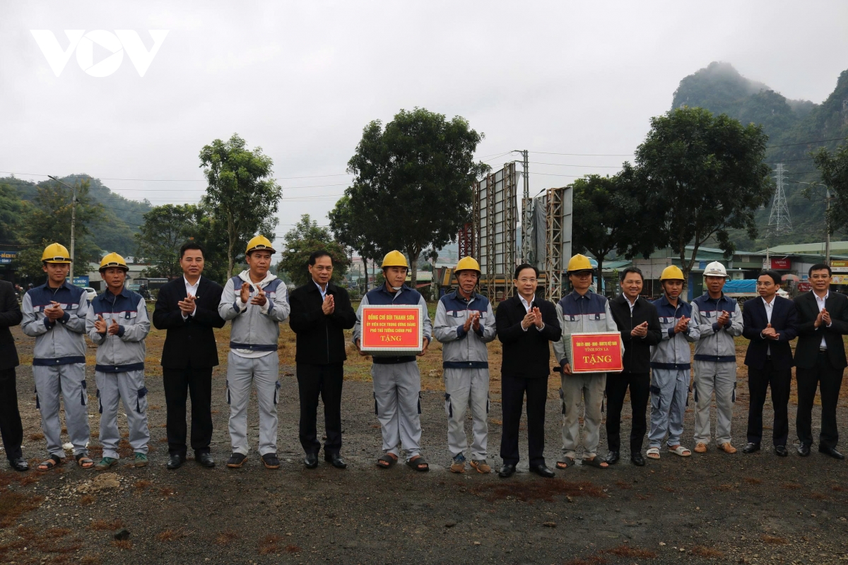 Phó Thủ tướng Chính phủ Bùi Thanh Sơn tặng quà đội ngũ thi công dự án xây dựng tuyến đường Chiềng Sinh - Chiềng Ngần