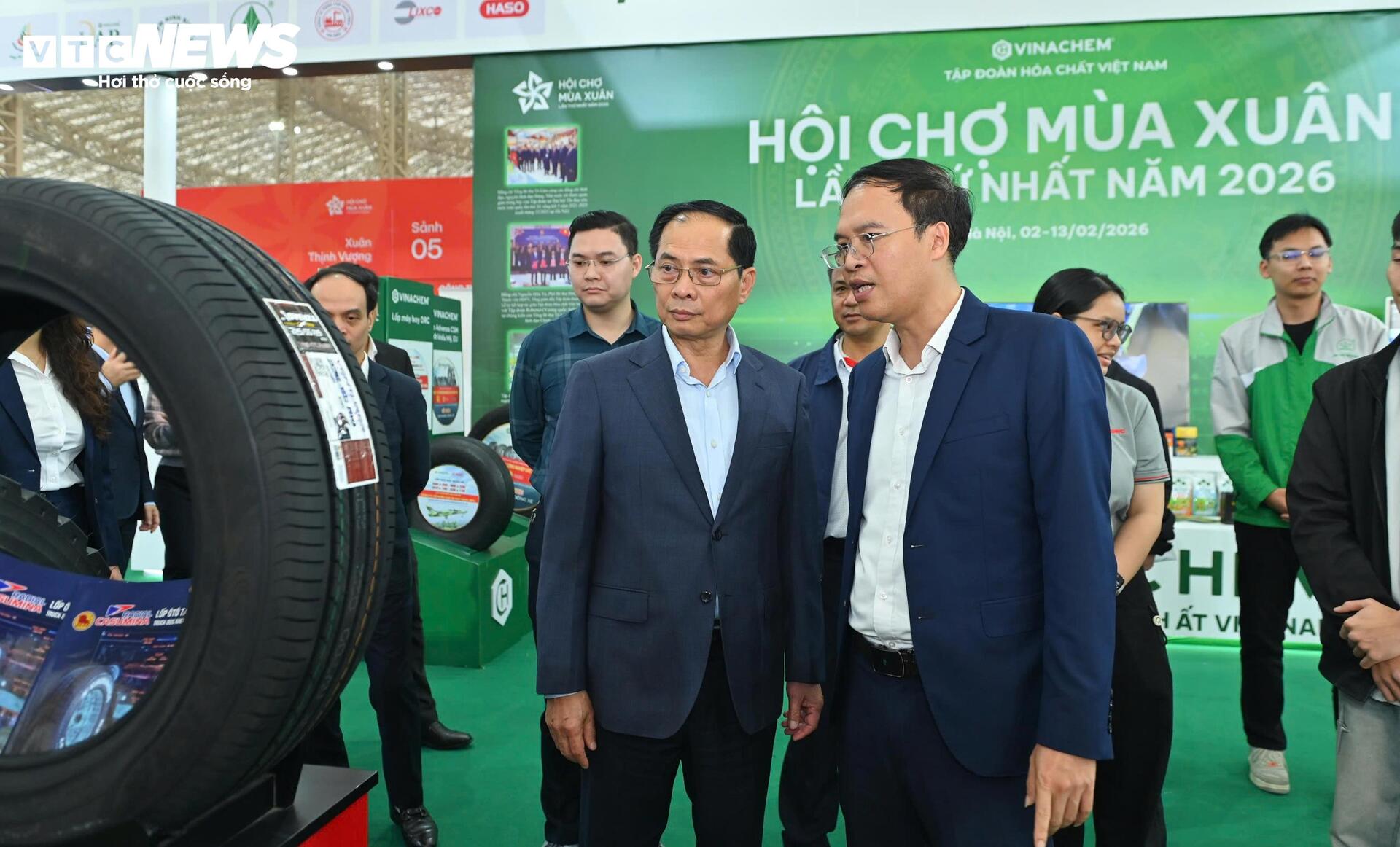 Phó Thủ tướng Bùi Thanh Sơn thăm các gian trưng bày, giới thiệu sản phẩm tại Hội chợ Mùa Xuân 2026.