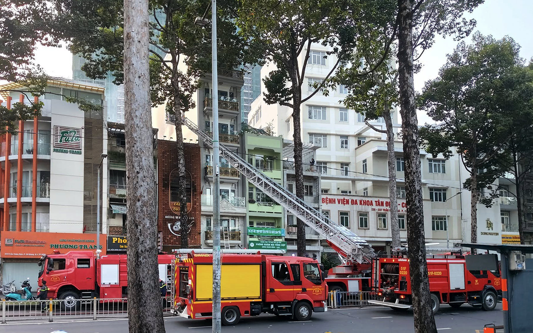 Hiện trường vụ cháy tại đường Trần Hưng Đạo, phường Cầu Ông Lãnh, TPHCM, sáng ngày 5/12