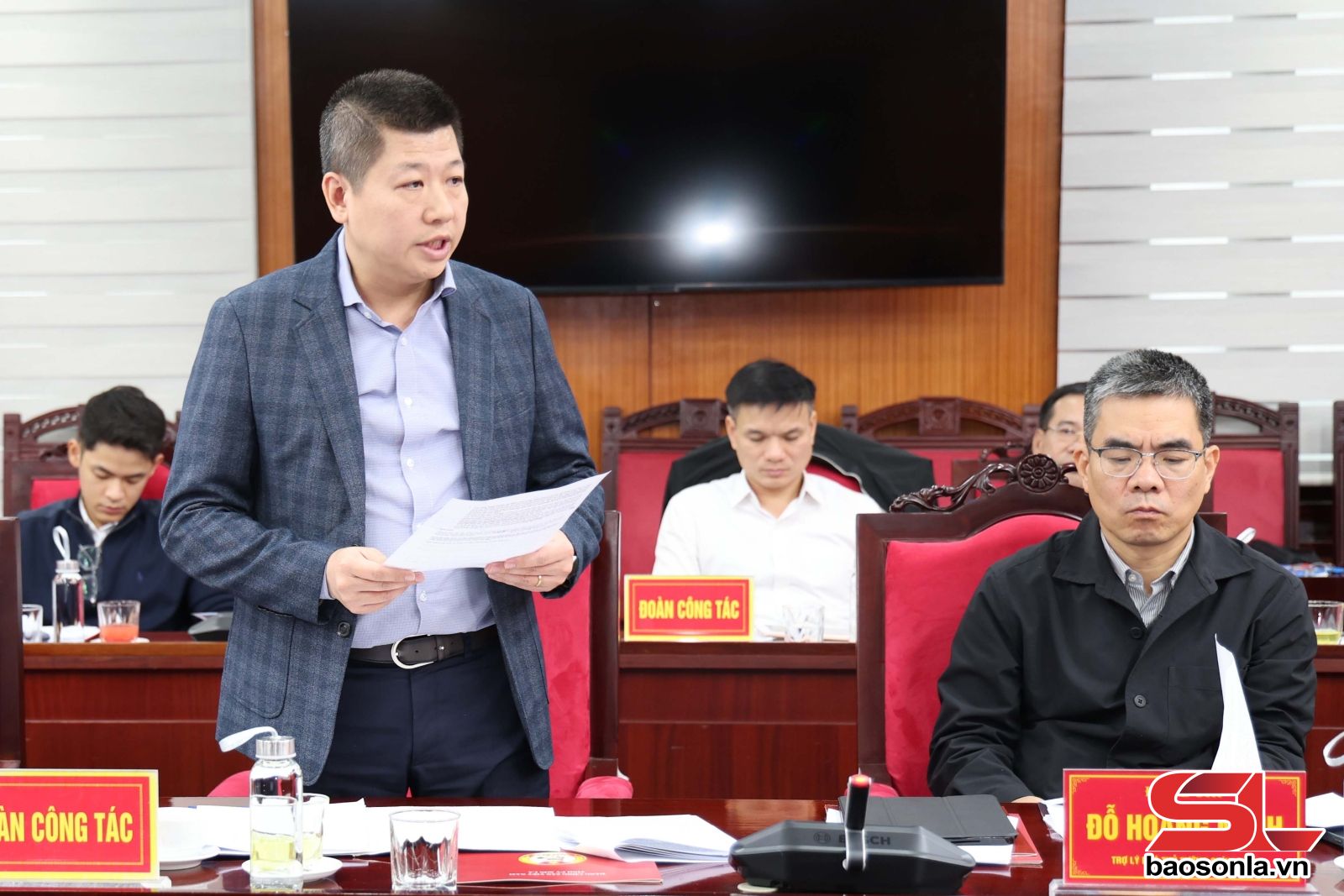 Đồng chí Phó Chủ tịch UBND tỉnh Sơn La báo cáo tại cuộc làm việc.