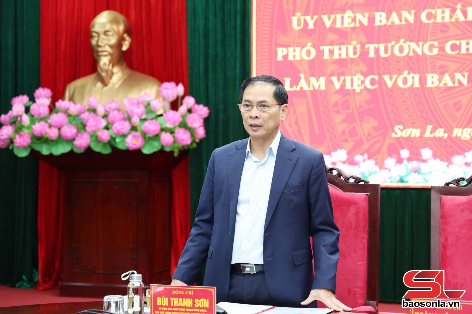 Phát biểu tại cuộc làm việc, Phó Thủ tướng Chính phủ Bùi Thanh Sơn ghi nhận và đánh giá cao nỗ lực, kết quả toàn diện của tỉnh Sơn La thời gian qua, không chỉ góp phần quan trọng vào tăng trưởng chung của cả nước, mà còn khẳng định quyết tâm chính trị và hướng đi đúng của tỉnh sau khi thực hiện mô hình chính quyền địa phương 2 cấp.