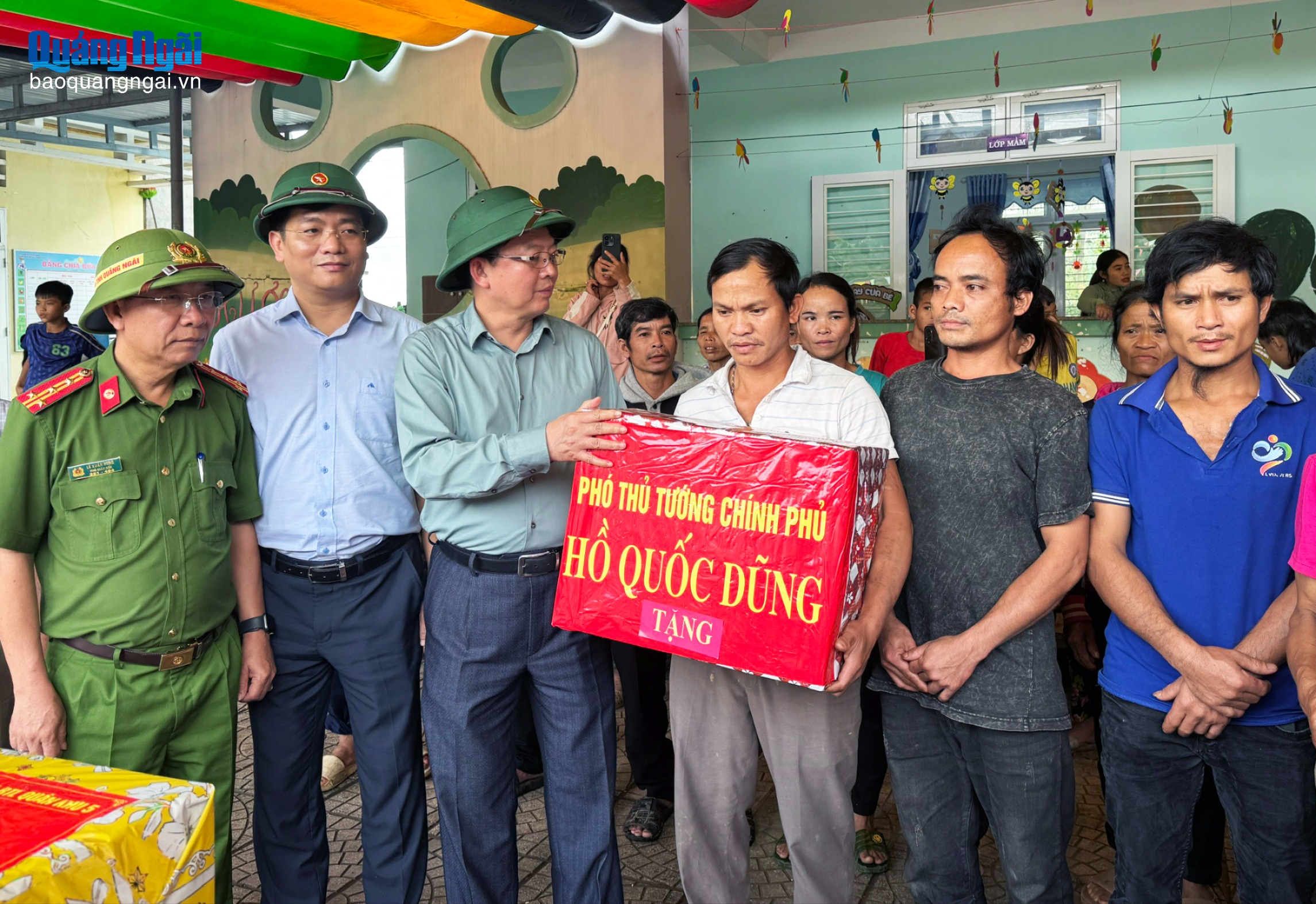 Phó Thủ tướng Chính phủ Hồ Quốc Dũng cũng đã đến thăm, tặng quà cho người dân ở điểm sơ tán tập trung Trường Mầm non số 1 Hương Trà, xã Tây Trà Bồng. Phó Thủ tướng ân cần động viên, chia sẻ khó khăn với người dân và yêu cầu chính quyền các cấp chăm lo tốt đời sống, đảm bảo đủ nhu yếu phẩm, nước sạch và chỗ ở an toàn.