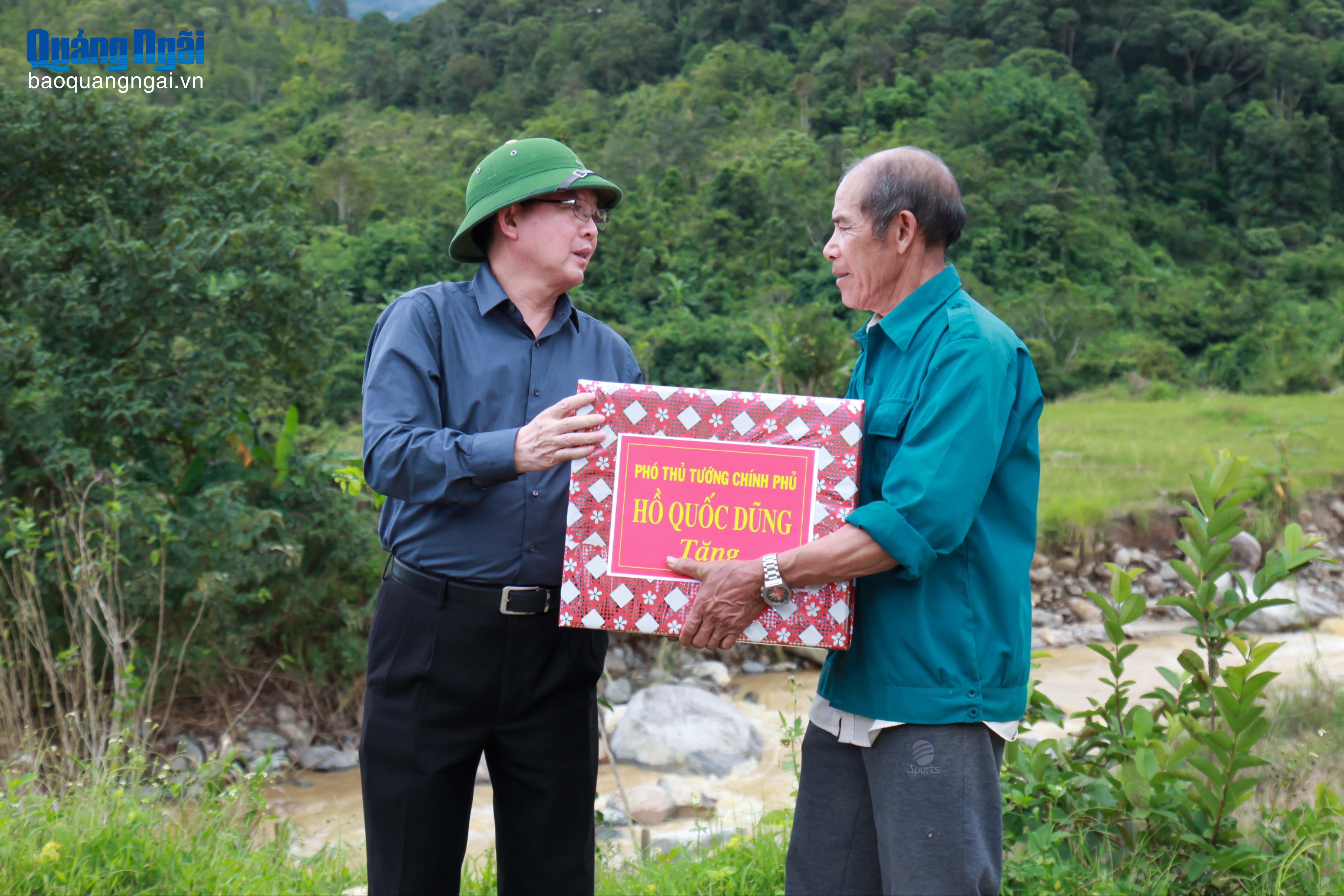 Dịp này, Phó Thủ tướng thăm hỏi, tặng quà và động viên người dân xã Ngọc Linh nỗ lực vượt qua khó khăn, sớm ổn định cuộc sống sau thiên tai.