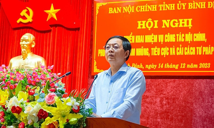 Đồng chí Hồ Quốc Dũng phát biểu tại Hội nghị triển khai nhiệm vụ công tác nội chính, phòng, chống tham nhũng, tiêu cực và cải cách tư pháp năm 2024. Ảnh tư liệu