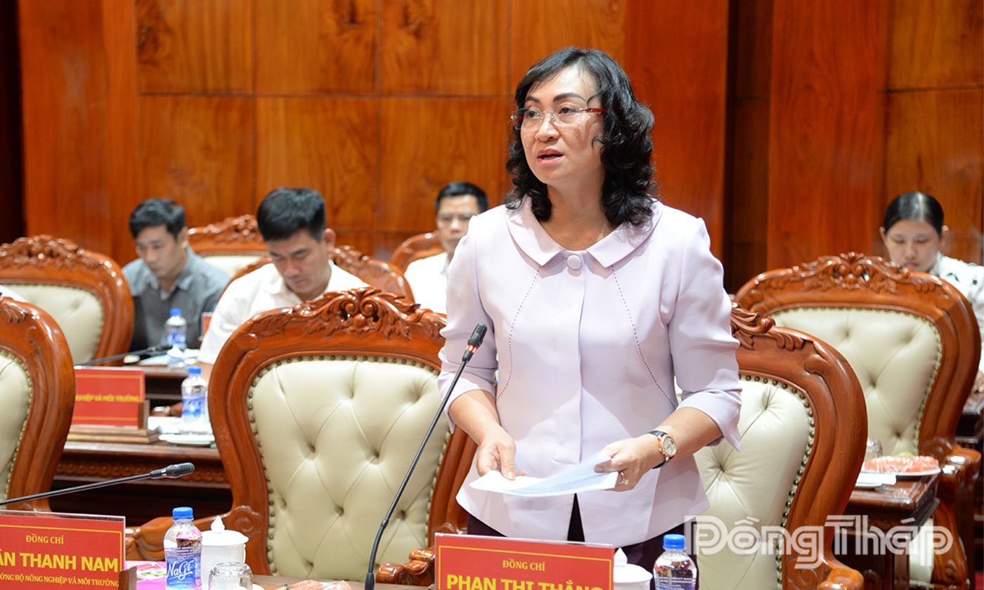 Đồng chí Phan Thị Thắng phát biểu tại buổi làm việc.