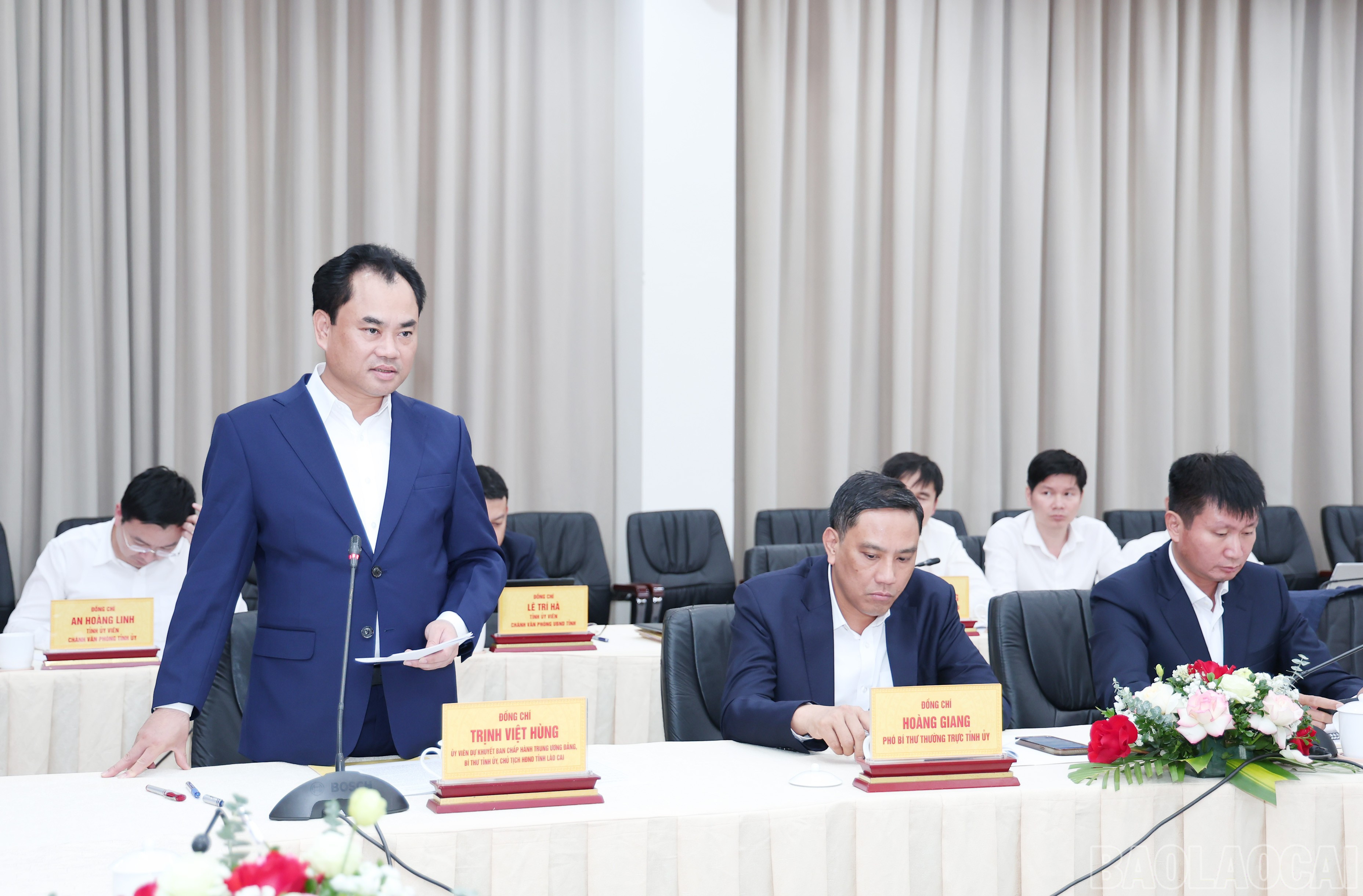 Các đồng chí lãnh đạo tỉnh Lào Cai phát biểu tại buổi làm việc.