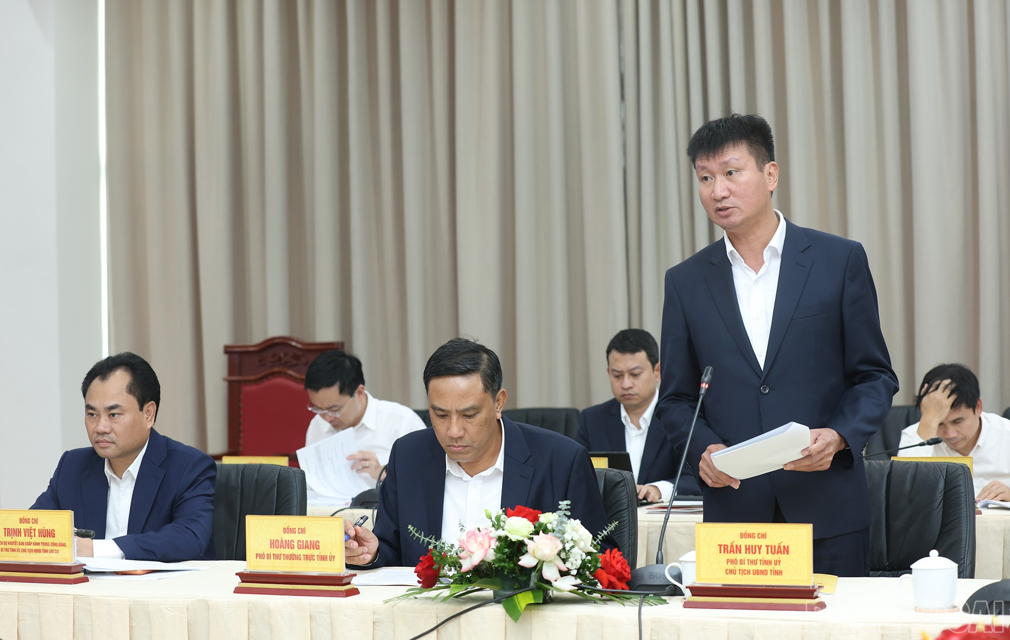 Tại buổi làm việc, đồng chí Trần Huy Tuấn - Phó Bí thư Tỉnh ủy, Chủ tịch UBND tỉnh đã báo cáo với đồng chí Phó Thủ tướng Chính phủ cùng Đoàn công tác về tình hình thực hiện kế hoạch phát triển kinh tế - xã hội 10 tháng, phương hướng, nhiệm vụ những tháng cuối năm 2025.