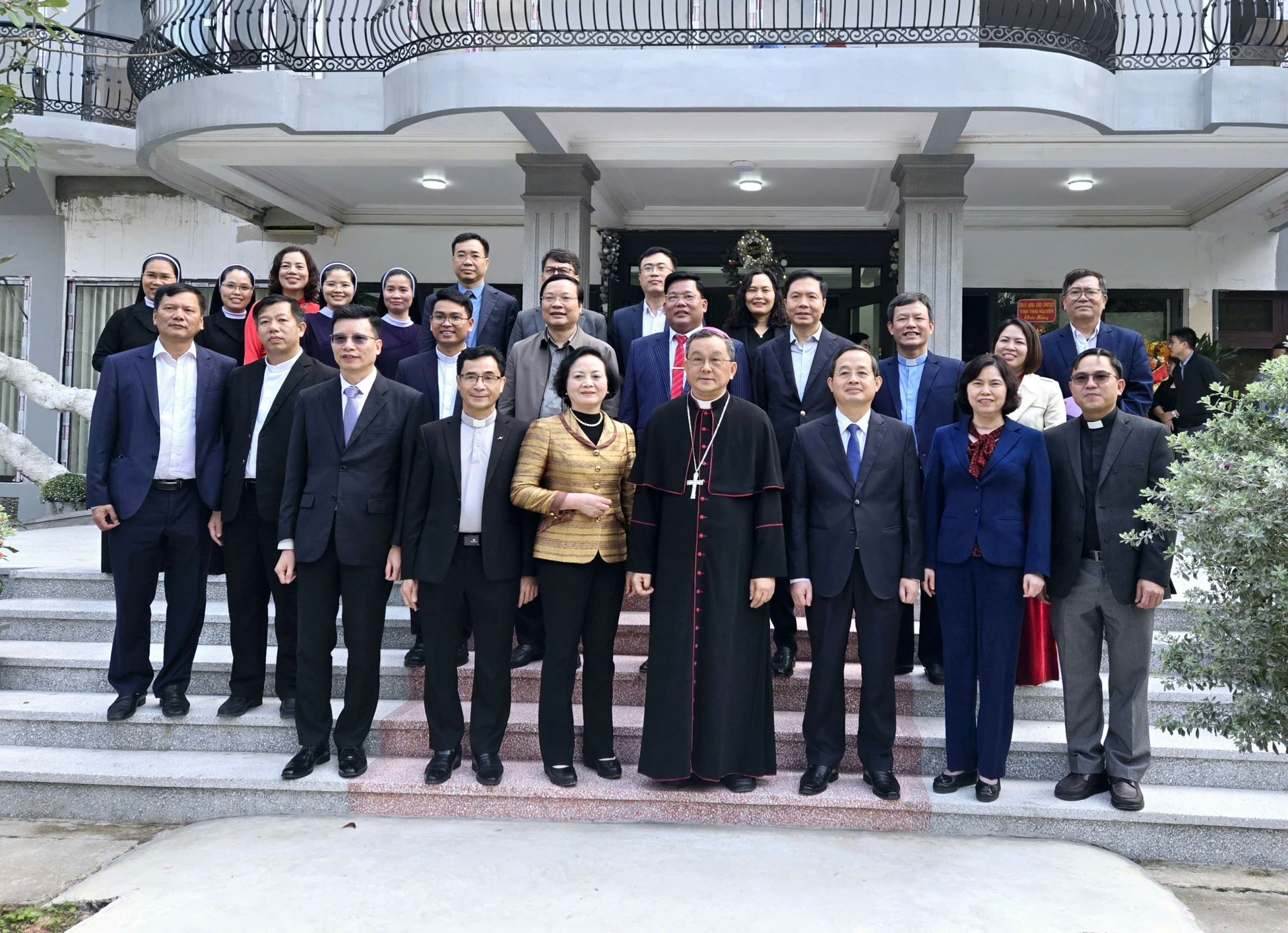 Phó Thủ tướng Chính phủ cùng các đồng chí lãnh đạo Trung ương và tỉnh Bắc Ninh thăm hỏi các Giám mục, Giáo sĩ, Tu sĩ tại Tòa Giám mục Bắc Ninh.