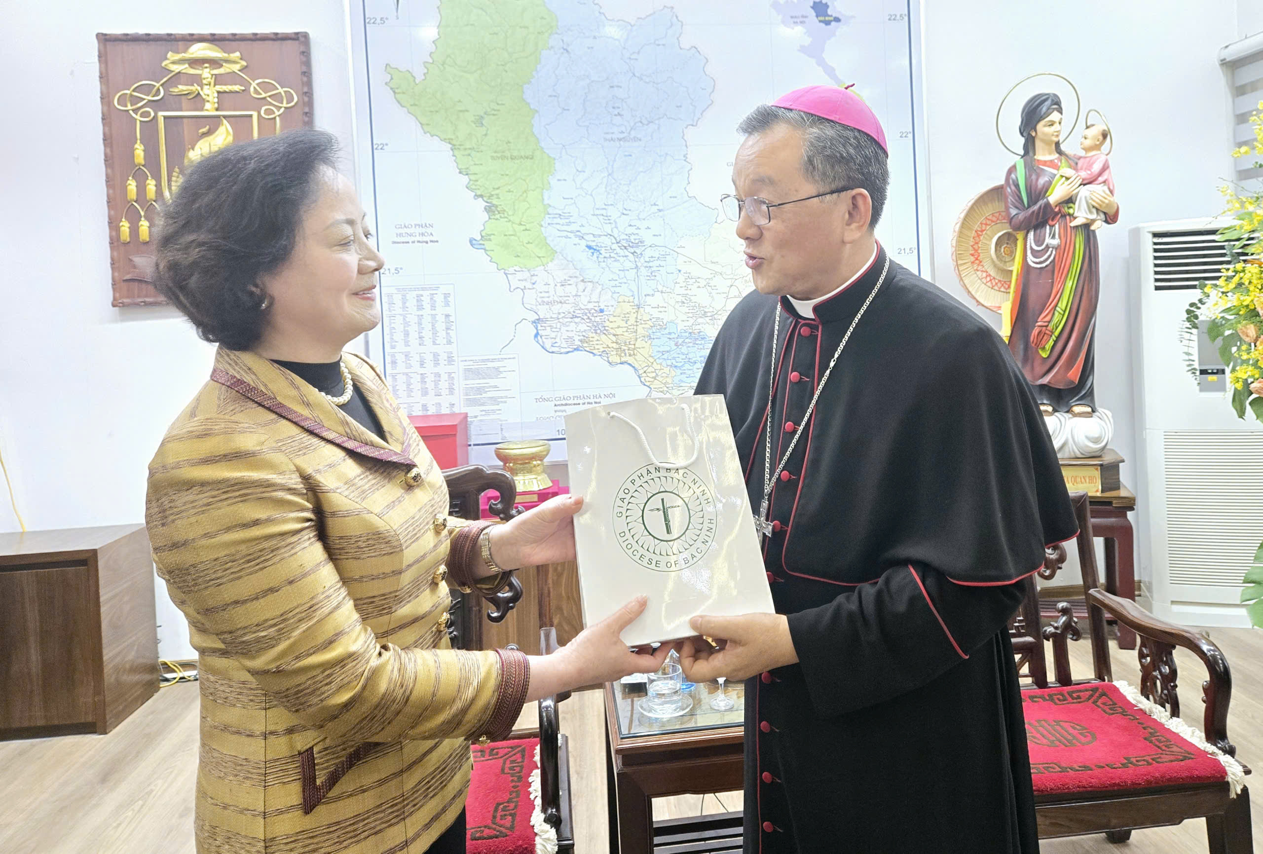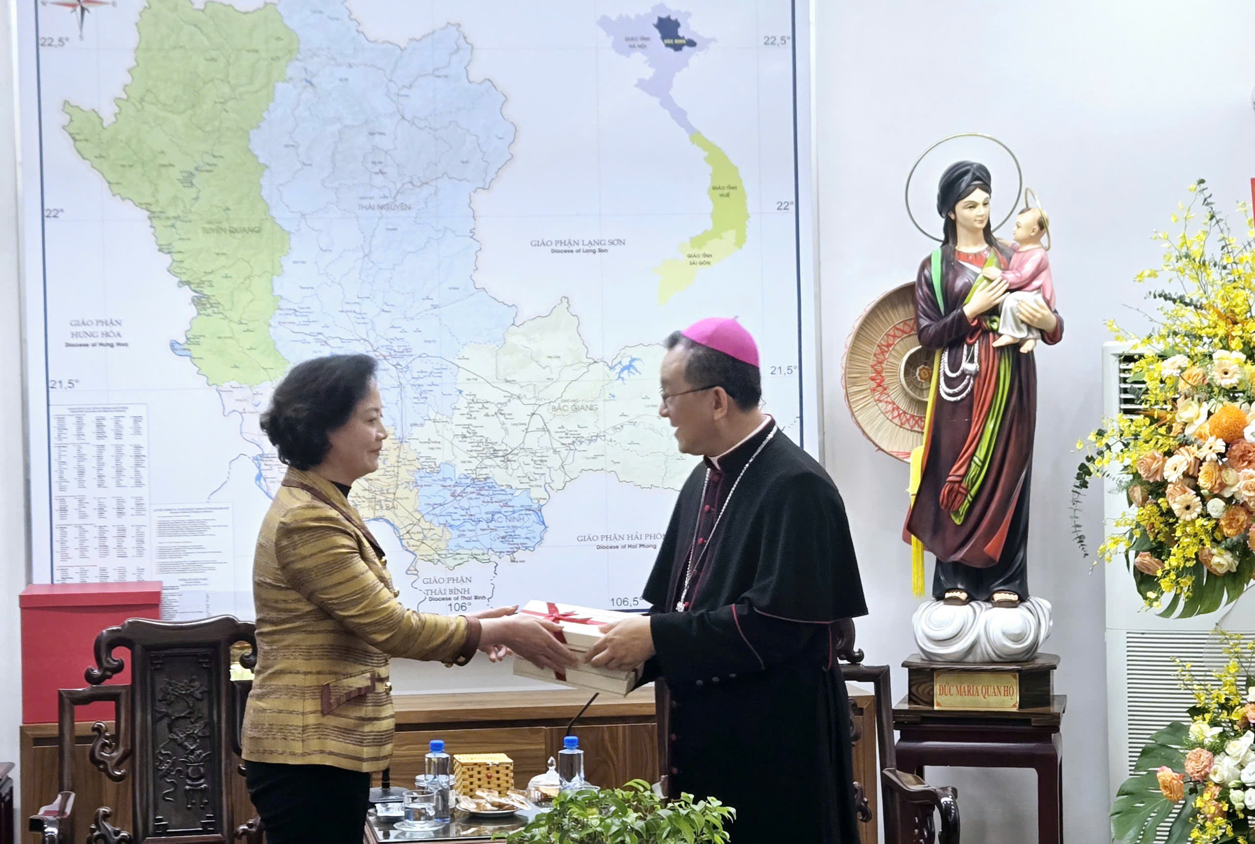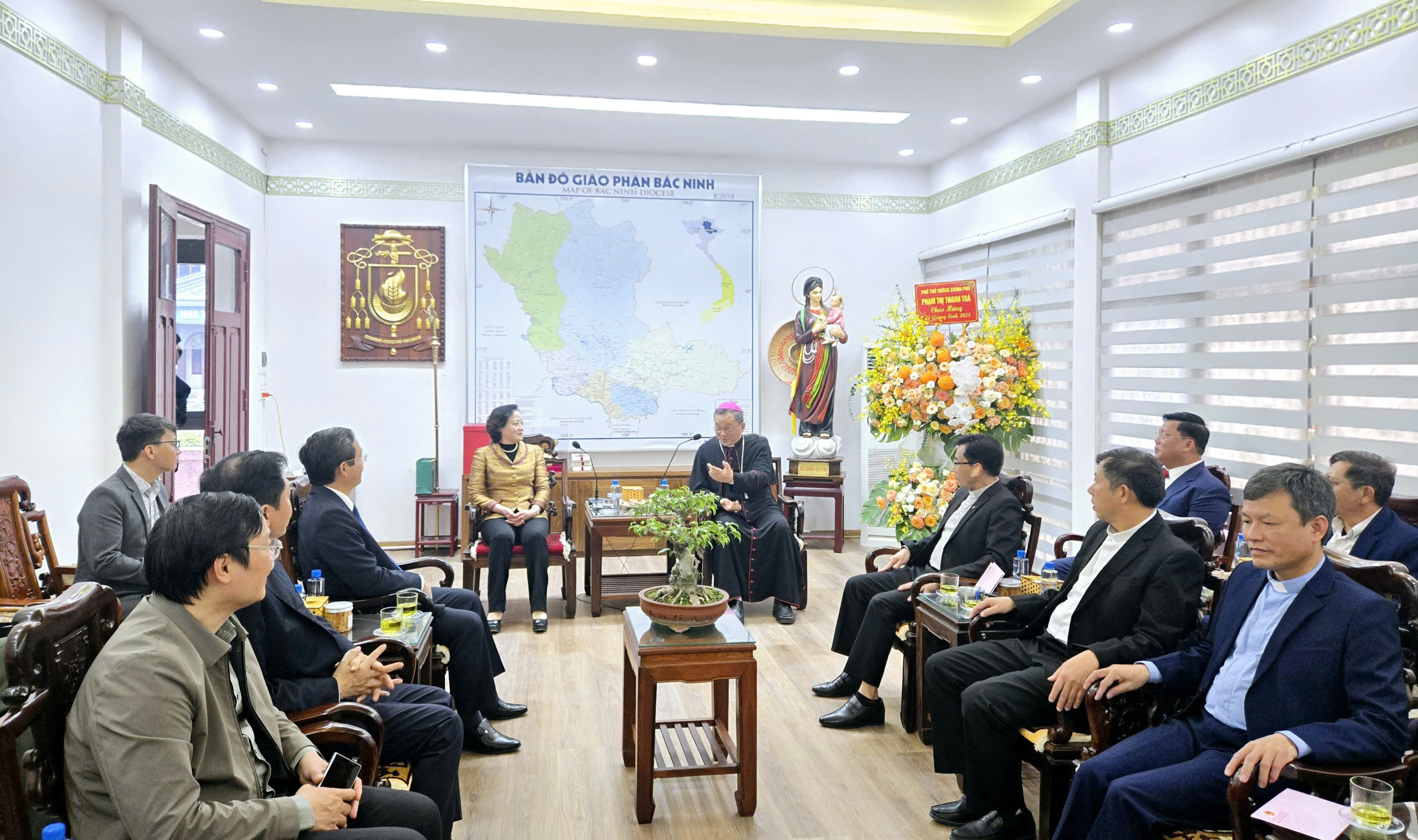 Phó Thủ tướng Phạm Thị Thanh Trà bày tỏ vui mừng được đến thăm Tòa Giám mục Bắc Ninh trong không khí hân hoan của mùa Giáng sinh năm 2025, trân trọng gửi tới Giám mục Đỗ Quang Khang, các linh mục, tu sĩ và toàn thể bà con giáo dân trong Giáo phận Bắc Ninh lời chúc mừng tốt đẹp nhất, chúc một mùa Giáng sinh an lành, hạnh phúc, đầm ấm và tràn đầy niềm tin.