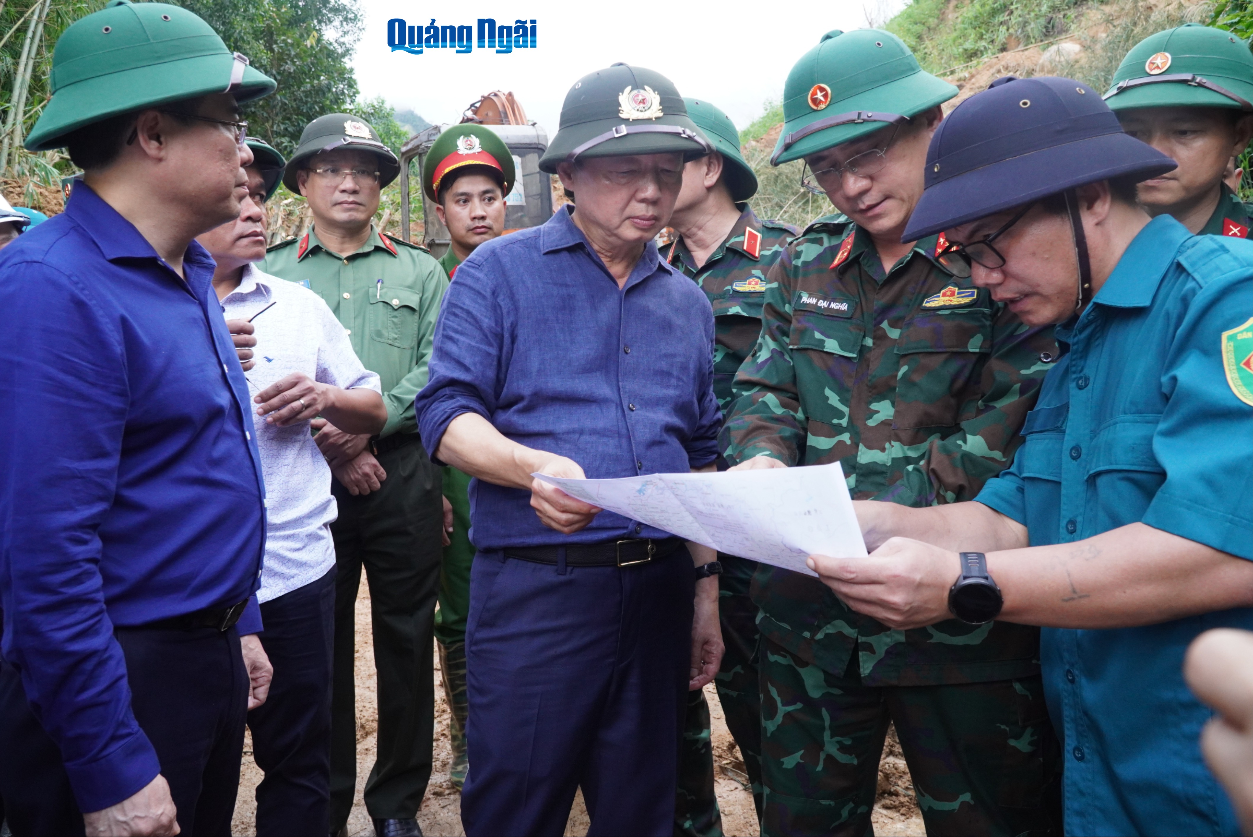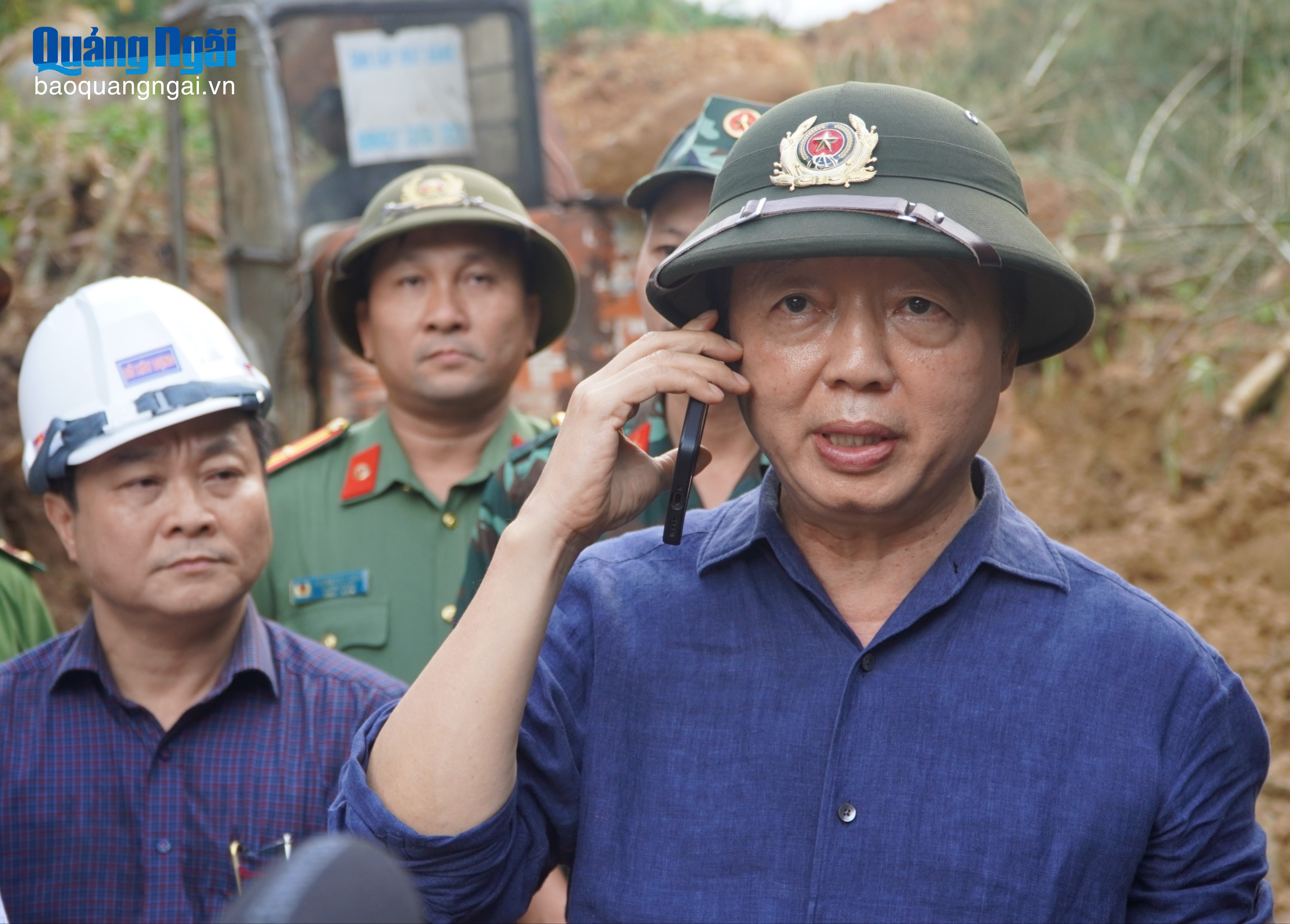 Khảo sát thực tế điểm sạt lở, Phó Thủ tướng Trần Hồng Hà yêu cầu tỉnh Quảng Ngãi phối hợp lực lượng quân đội, huy động tối đa phương tiện, nhân lực và tổ chức thi công làm ngày làm đêm từ 2 phía để sớm thông tuyến; phải đảm bảo thông đường trong ngày 31/10 để tiếp cận hỗ trợ người dân kịp thời.