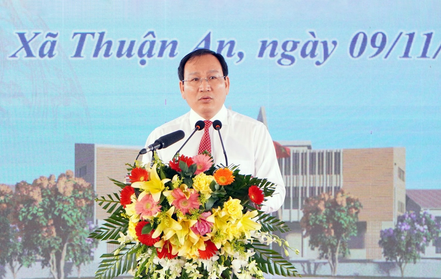 Tham dự còn có các đồng chí là Thường vụ Tỉnh ủy, Thường trực HĐND, UBND, Ủy ban MTTQ Việt Nam tỉnh; lãnh đạo các sở, ban, ngành và đông đảo cán bộ, Nhân dân và học sinh xã Thuận An.