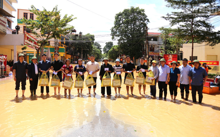 Phó Thủ tướng Hồ Đức Phớc cùng lãnh đạo tỉnh Lạng Sơn tặng quà cho người dân chịu ảnh hưởng của mưa bão tại xã Hữu Lũng.