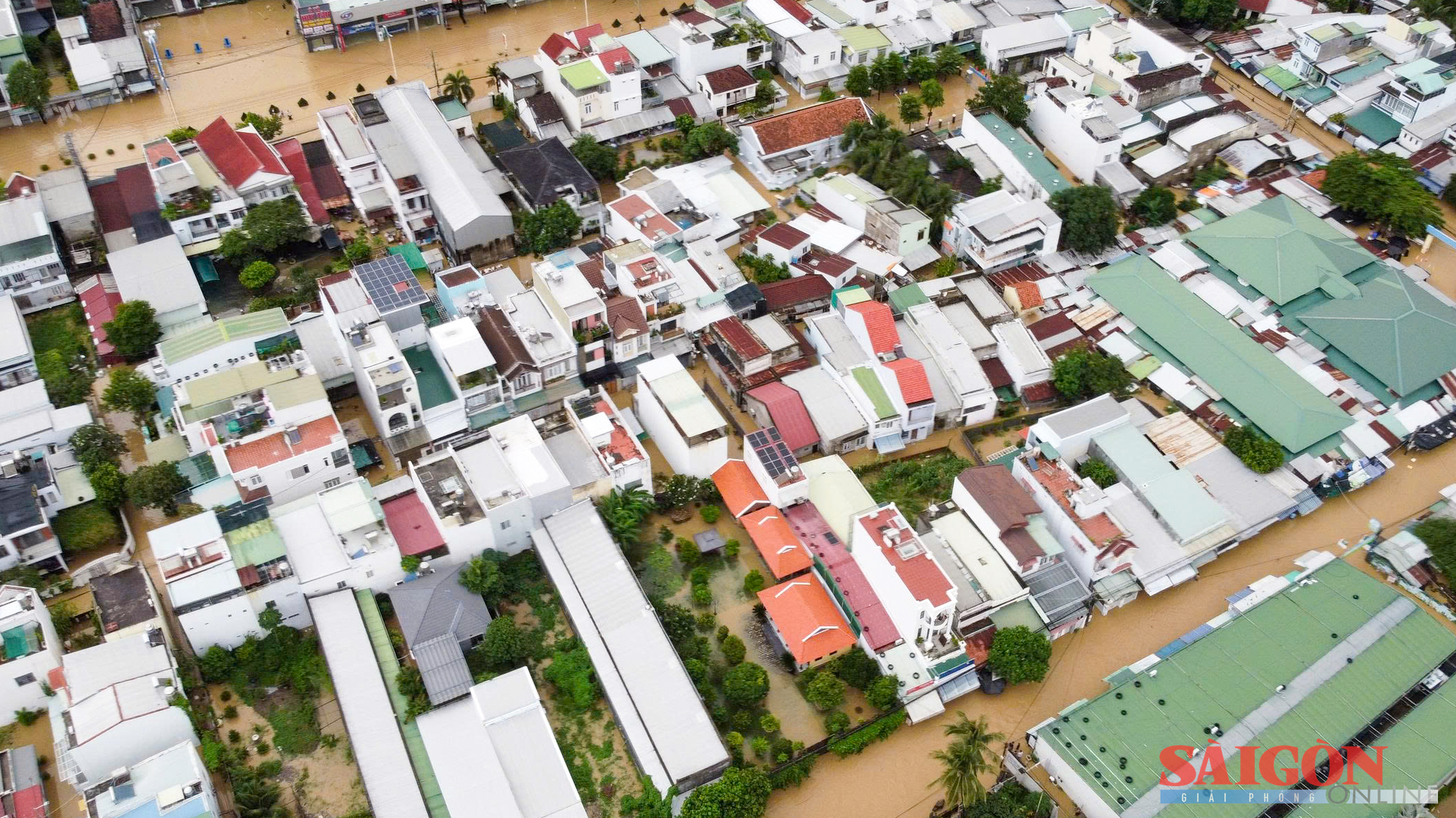 Nhiều khu dân cư tại phường Tây Nha Trang bị cô lập. Ảnh: HIẾU GIANG