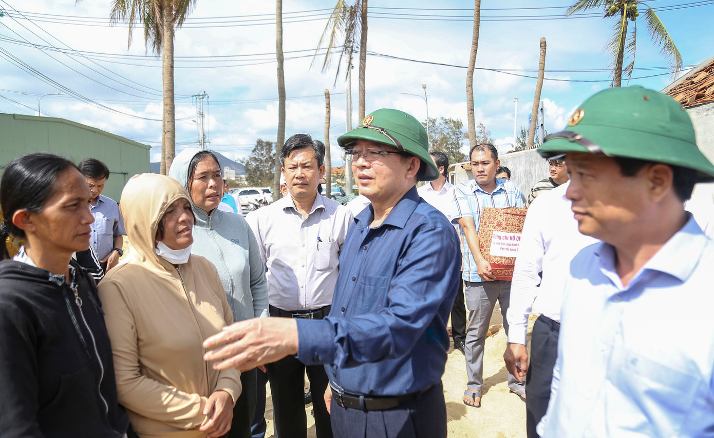 Tại các địa phương đến thăm, kiểm tra (phường Quy Nhơn Đông, xã Tuy Phước Đông và xã Đề Gi), Phó Thủ tướng Hồ Quốc Dũng chia sẻ khó khăn với chính quyền và người dân các địa phương về những thiệt hại nghiêm trọng do bão gây ra.