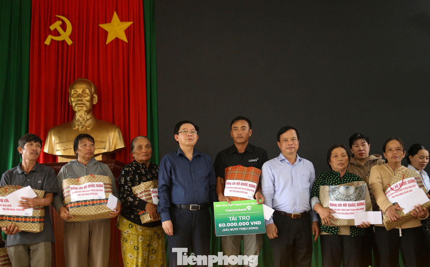Dịp này, Phó Thủ tướng Hồ Quốc Dũng đã tặng 20 gia đình có nhà bị sập hoàn toàn ở 3 địa phương mỗi trường hợp 60 triệu đồng để xây dựng lại nhà ở; trao 150 suất quà cho các trường hợp bị thiệt hại do bão số 13 gây ra ở 3 địa phương.