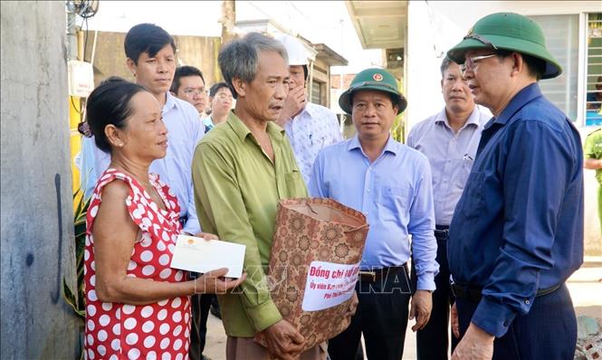 Phó Thủ tướng Hồ Quốc Dũng thăm hỏi các hộ dân bị sập nhà ở xã Tuy Phước Đông.