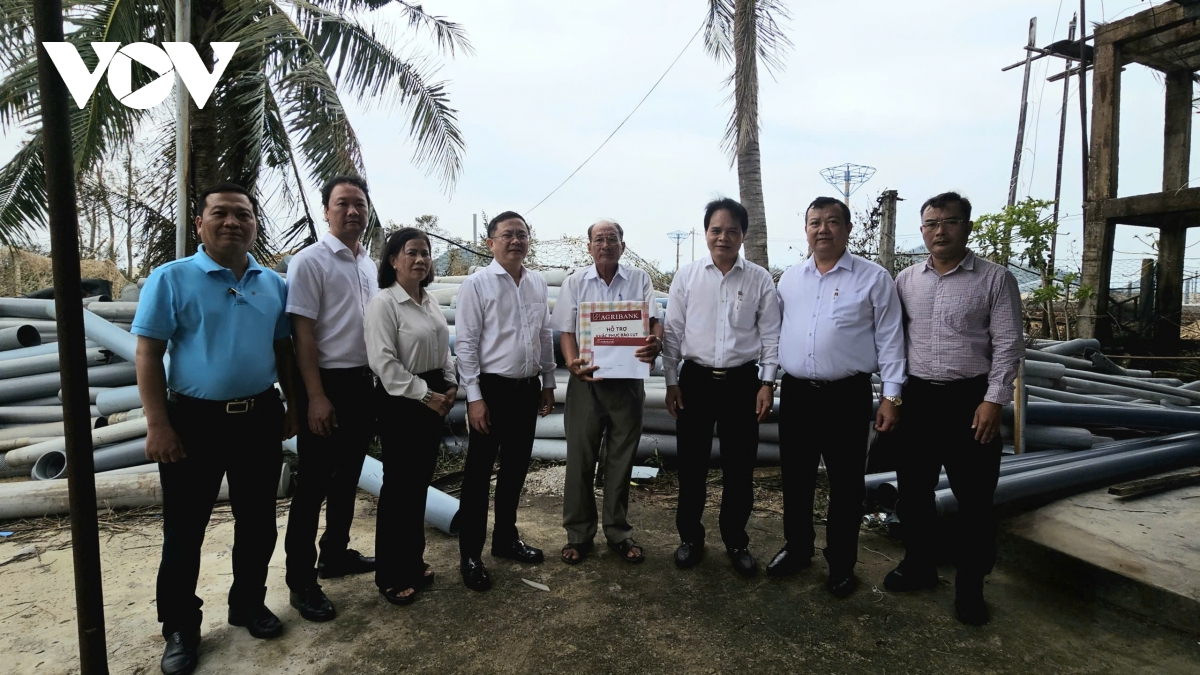 Dịp này, ông Vương Hồng Lĩnh, Phó Tổng Giám đốc Agribank đến thăm, động viên khách hàng Công ty TNHH Ngọc Châu - đơn vị nuôi tôm tại xã Đề Gi (huyện Phù Cát, tỉnh Bình Định cũ) nay là tỉnh Gia Lai đã chịu thiệt hại nặng do bão số 13; trao 20 triệu đồng hỗ trợ Công ty TNHH Ngọc Châu.
