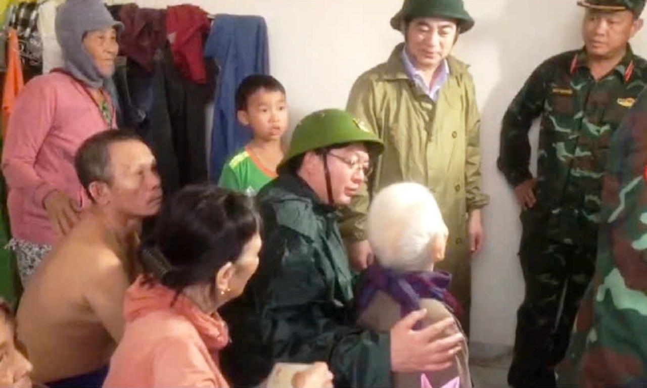 Phó Thủ tướng Hồ Quốc Dũng cơ động bằng trực thăng thị sát các vùng bị ngập lụt, cô lập và kiểm tra vị trí sơ tán người dân tại tỉnh Khánh Hòa.