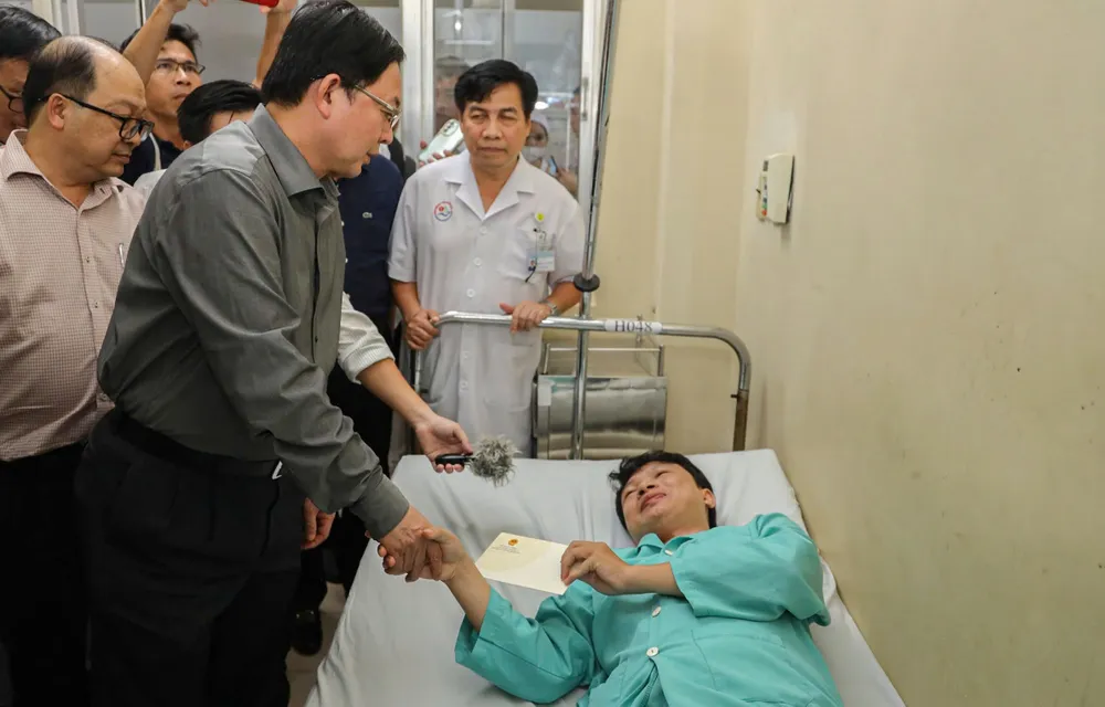 Phó Thủ tướng Hồ Quốc Dũng thăm hỏi, động viên các nạn nhân trong vụ sạt lở trên đèo Khánh Lê. Ảnh: XUÂN HOÁT