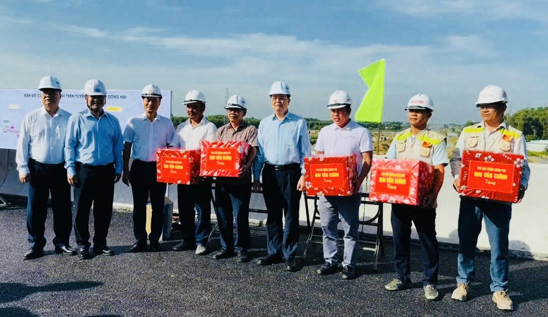 Phó Thủ tướng Mai Văn Chính ghi nhận nỗ lực của đội ngũ kỹ sư, công nhân và trao quà động viên lực lượng thi công dự án.
