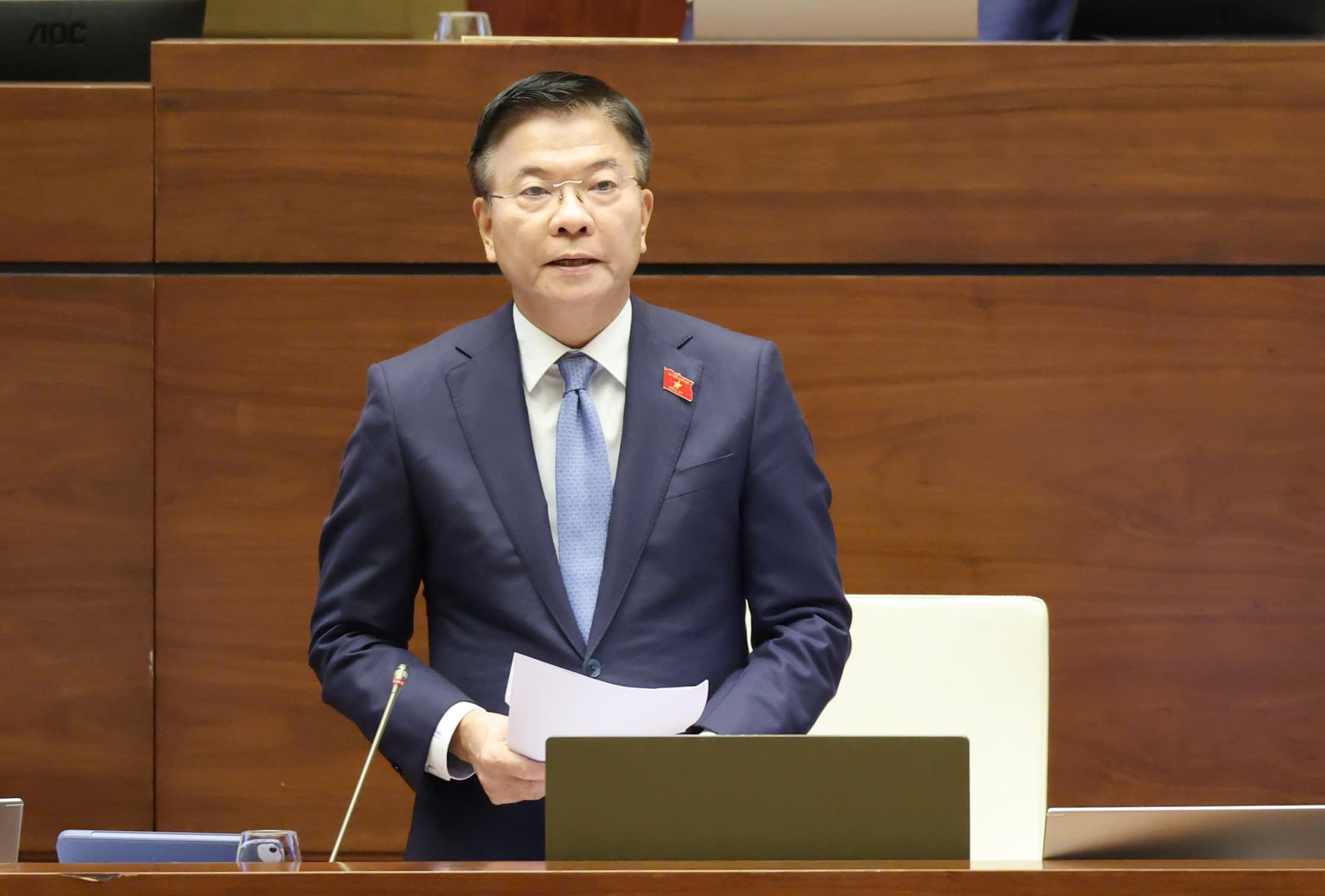 Phó Thủ tướng Lê Thành Long phát biểu giải trình, làm rõ một số vấn đề đại biểu Quốc hội nêu, sáng 30-10. Ảnh QUANG PHÚC