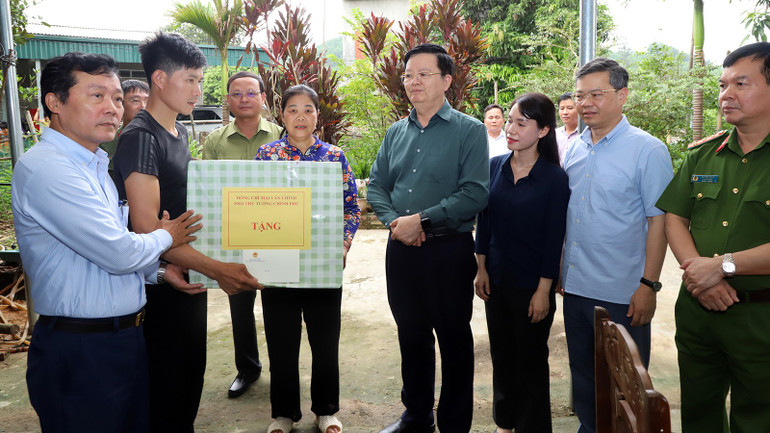Phó Thủ tướng Mai Văn Chính tặng quà động viên tinh thần các gia đình bị ảnh hưởng do thiên tai.