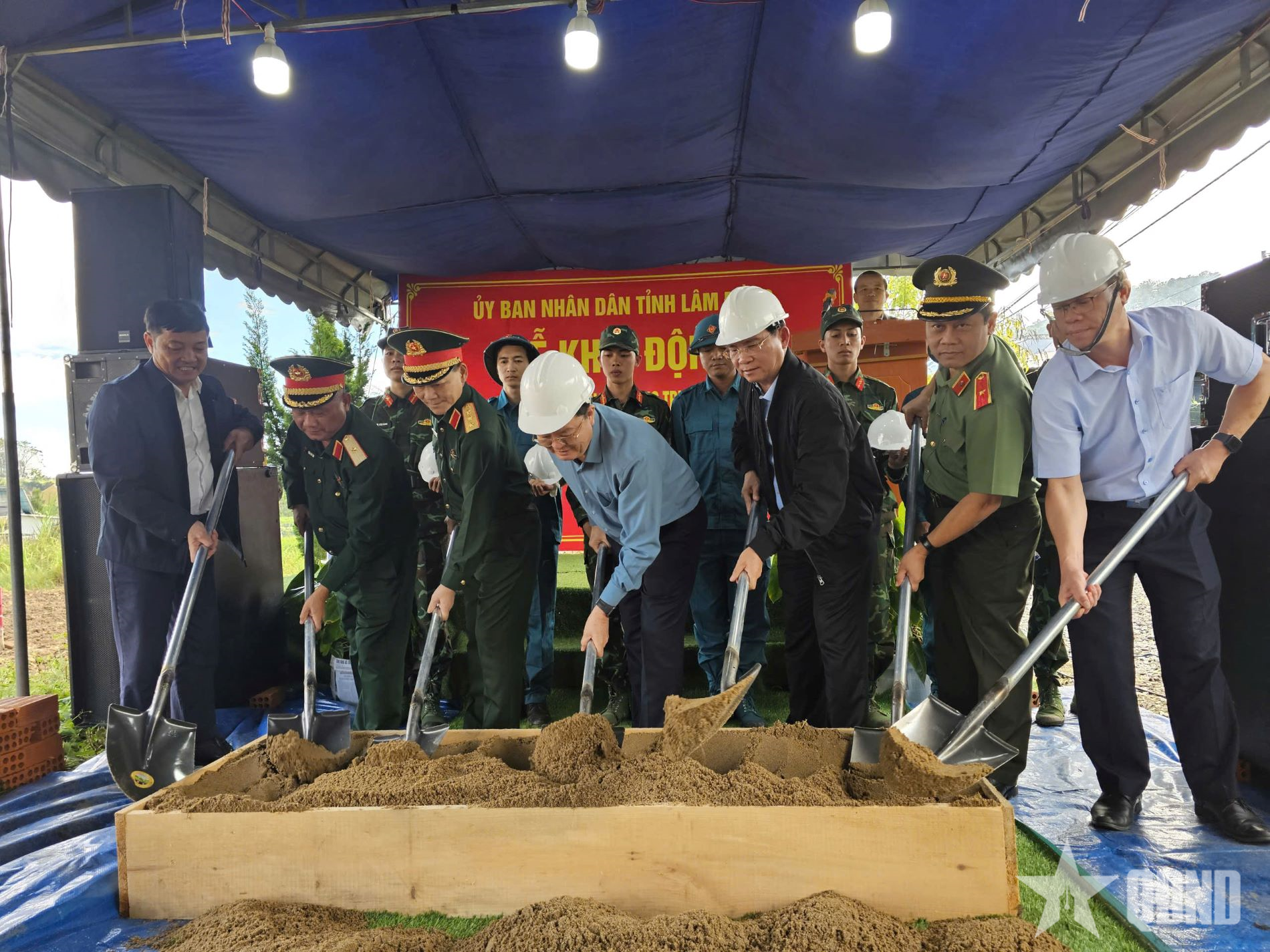 Phó thủ tướng Mai Văn Chính cùng các đại biểu khởi công xây nhà tặng người dân bị thiệt hại do mưa lũ tại xã D'ran.