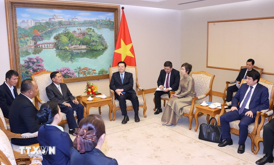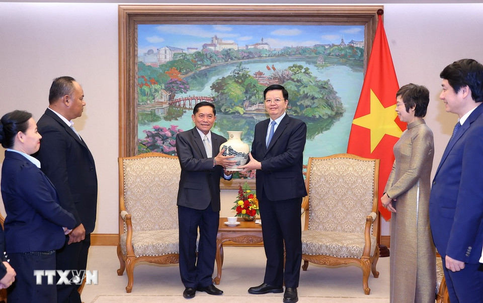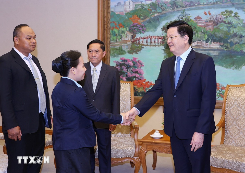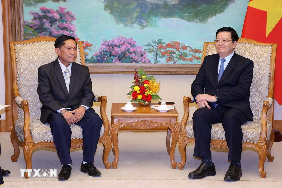 Phó Thủ tướng Mai Văn Chính tiếp Tổng Giám đốc Thông tấn xã Pathet Lào Vannasin Simmavong. (Ảnh: Văn Điệp/TTXVN)