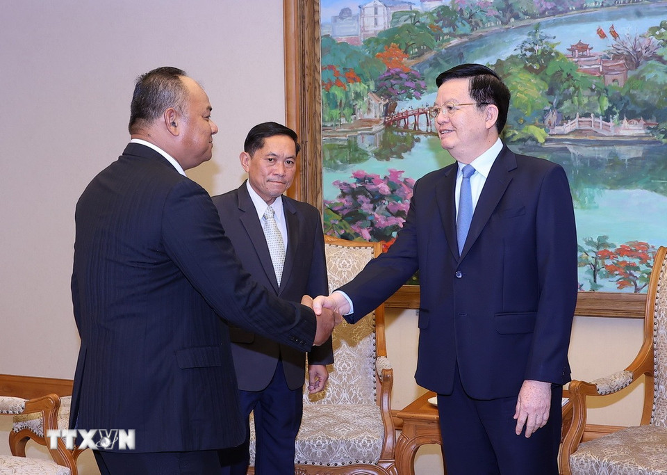 Phó Thủ tướng Mai Văn Chính tiếp Tổng giám đốc Thông tấn xã Pathet Lào Vannasin Simmavong. (Ảnh: Văn Điệp/TTXVN)