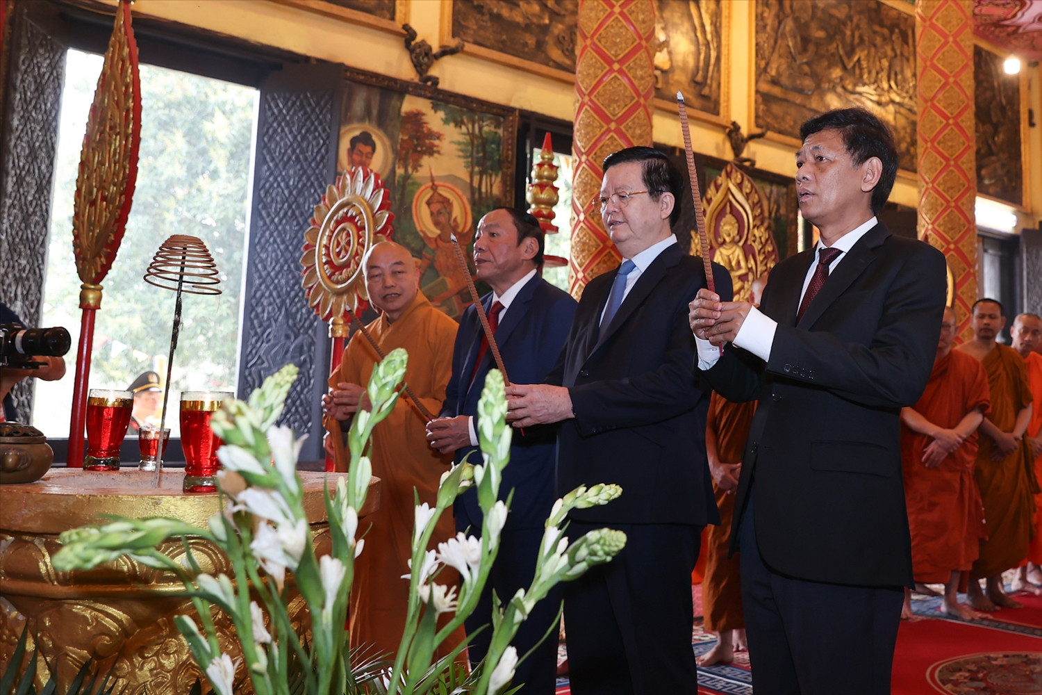 Phó Thủ tướng Mai Văn Chính và các đại biểu dâng hương tại chùa Khmer.