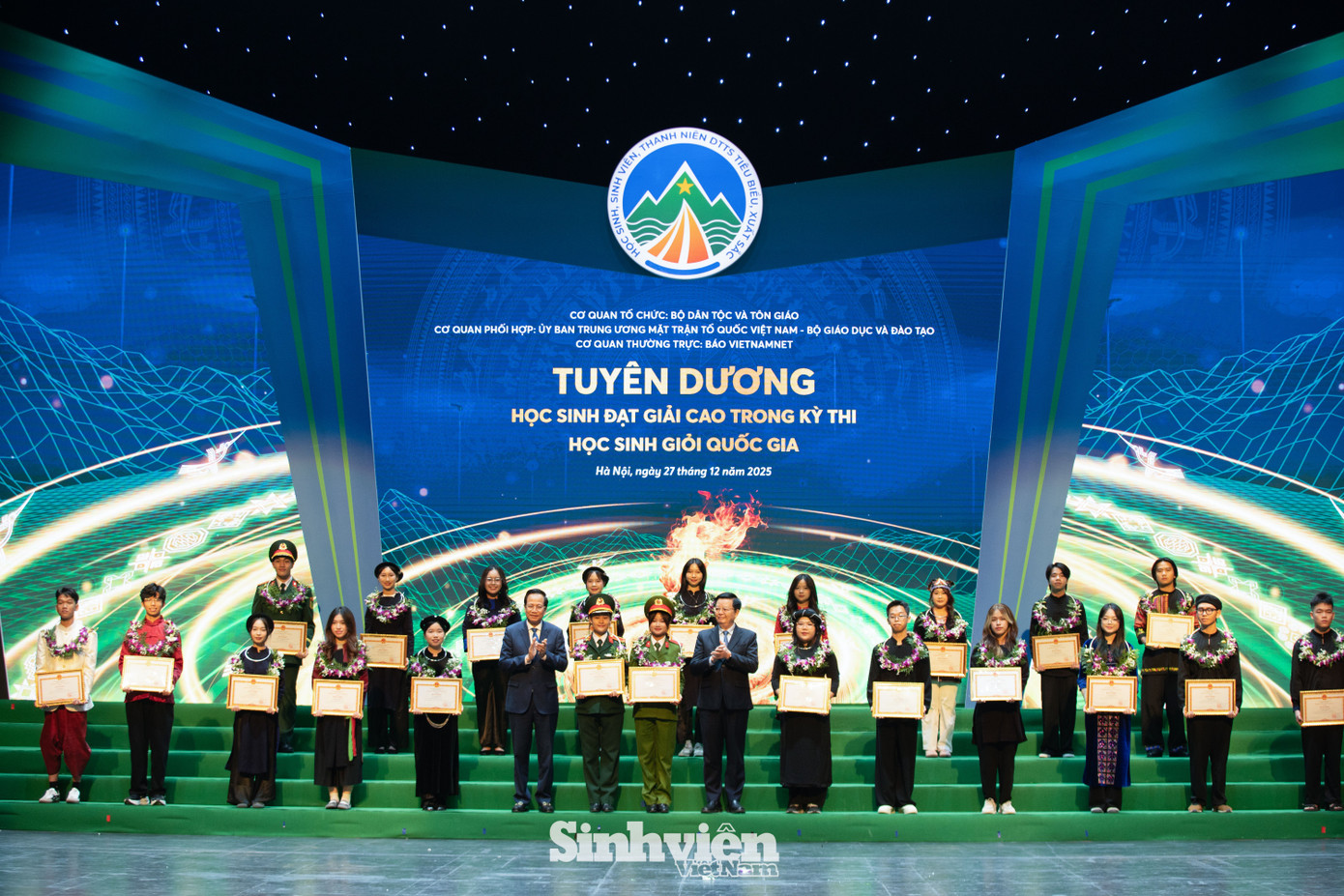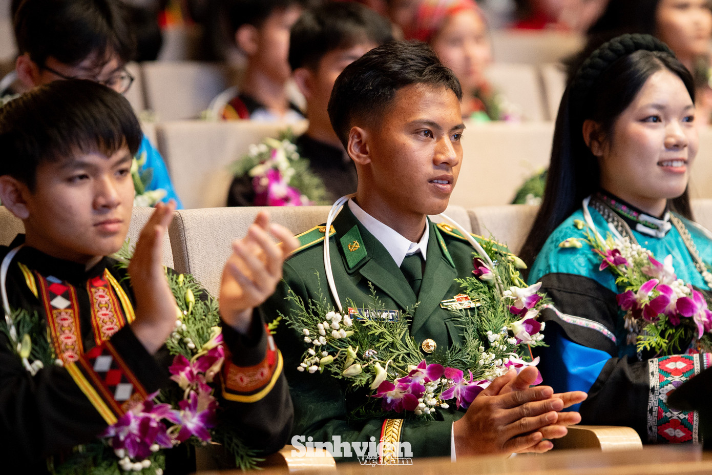 Ông Lâm Văn Mẫn - Chủ tịch Hội đồng Dân tộc của Quốc hội; ông Lê Quân - Thứ trưởng Bộ Giáo dục và Đào tạo; ông Lê Quốc Minh - Phó Trưởng Ban Tuyên giáo và Dân vận Trung ương và Trung tướng Nguyễn Anh Tuấn - Chính ủy Bộ đội Biên phòng trực tiếp trao bằng khen cho các học sinh, sinh viên, thanh niên DTTS xuất sắc, tiêu biểu năm 2025.