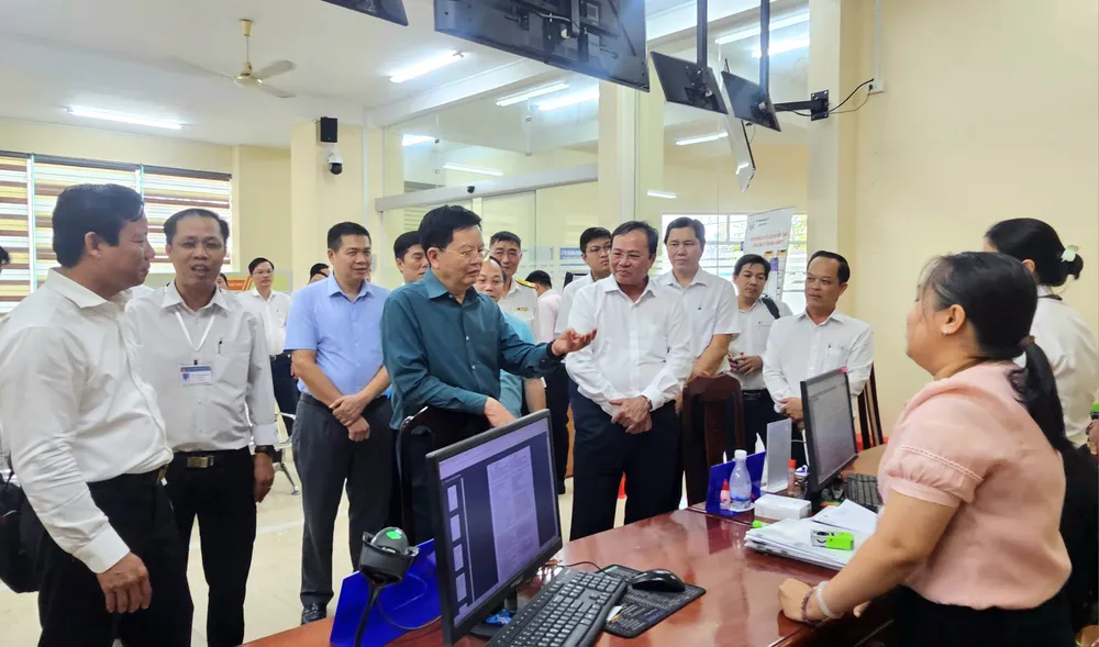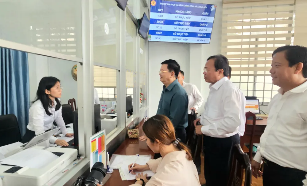 Phó Thủ tướng Mai Văn Chính khảo sát tại trung tâm hành chính công xã Lương Hòa. Ảnh: HUỲNH DU