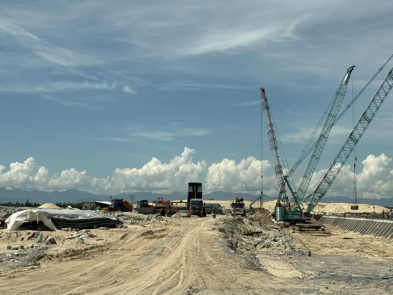Nhà đầu tư đang tích cực tập trung thiết bị, nhân lực, vật tư để triển khai thi công đồng loạt gói thầu xây lắp quyết tâm hoàn thành bến số 1 và 2 (Khu bến cảng Mỹ Thủy) vào tháng 3/2026.