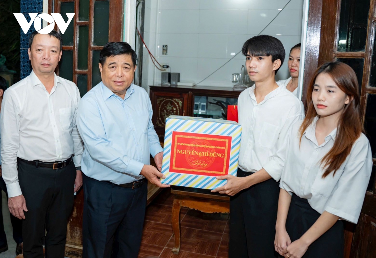 Phó Thủ tướng Nguyễn Chí Dũng tặng quà đến gia đình ông Võ Viết Quang ở tổ dân phố Lương Xuân, phường Hương Thủy, thành phố Huế