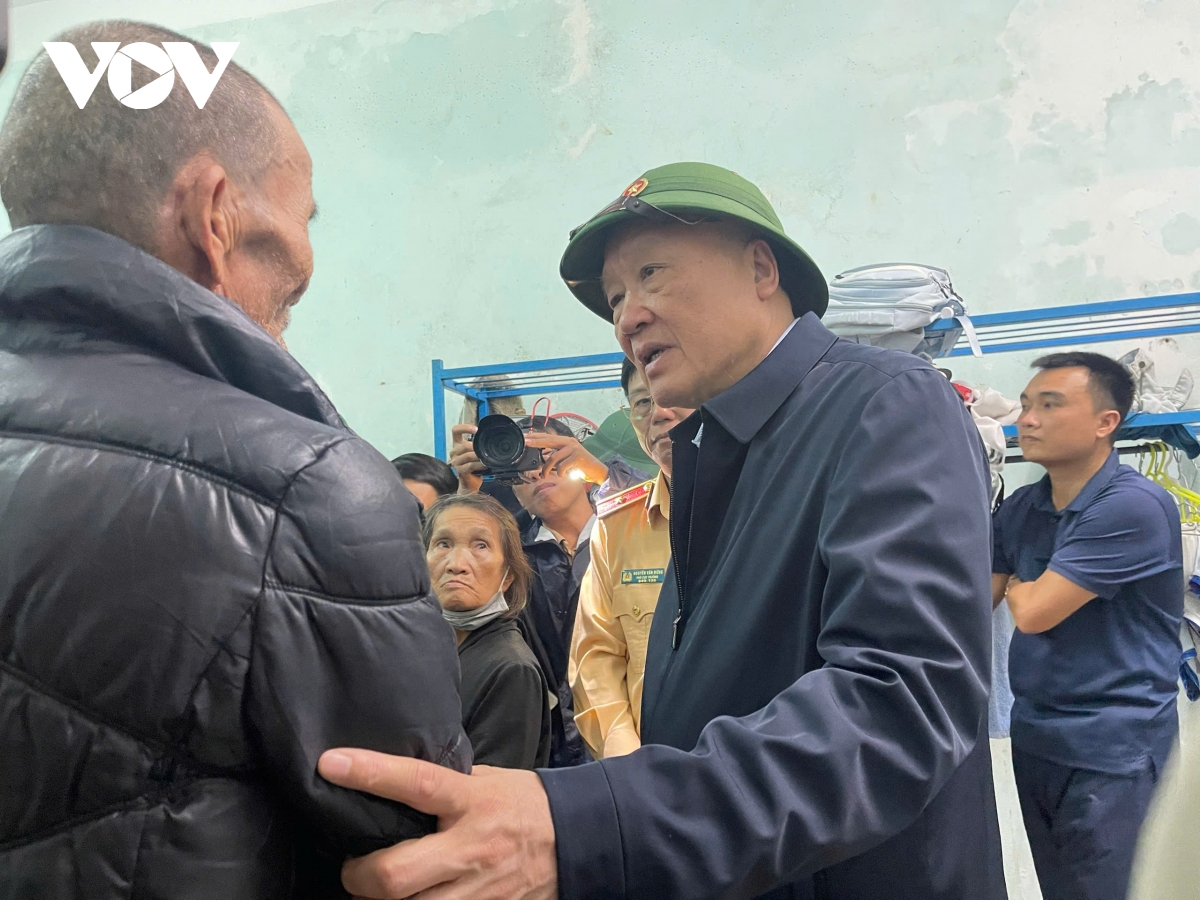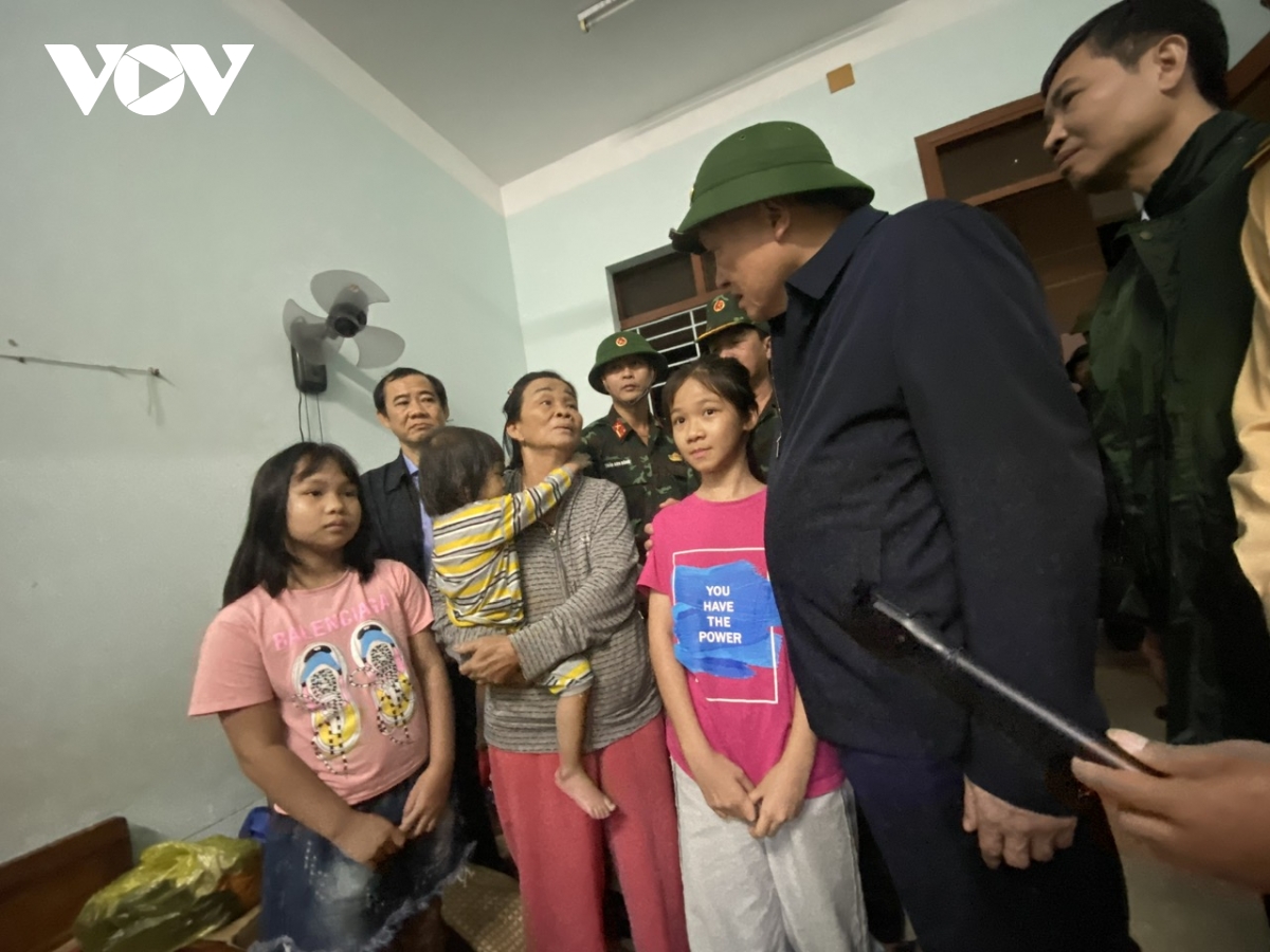 “Vào lúc khó khăn này quan trọng nhất là con người, theo chỉ dẫn của Bộ đội, Công an ra được đến đây là quý lắm rồi, đồ đạc, nhà cửa ta tính sau, Đảng, Nhà nước sẽ hỗ trợ thêm. Chứ còn cứ tiếc của ở trong đấy thì có nhiều điều rủi ro lắm. Người là quan trọng, các cháu nhỏ ra được đến đây an toàn là mừng lắm rồi. Bây giờ yêu cầu lớn nhất là phải cứu người, mình ở đây chứ bây giờ còn một số nơi bà con vẫn còn trên nóc nhà, Bội đội, Công an đang tìm cách tiếp cận”, Phó Thủ tướng nói.