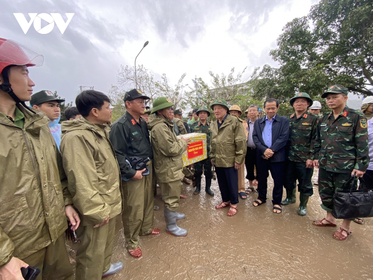 “Trường học, trạm y tế là nơi để chữa bệnh cho dân, để nước rút, hết lũ thì các cháu đến trường sớm. Những nơi công cộng thế là ưu tiên, thế rồi nhà dân, nhất là gia đình chính sách, người già neo đơn, chỉ có các cụ già thôi, không biết trông cậy vào ai, con cháu đi xa hết rồi, không còn ở đây nữa, thì trông cậy vào lực lượng vũ trang, Bộ đội, Công an đến với dân. Lúc này dân cần lắm” - Phó Thủ tướng Nguyễn Hòa Bình nói.
