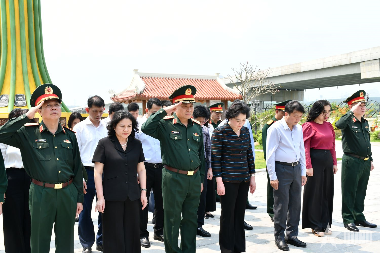 Đoàn công tác Ban Chỉ đạo quốc gia về tìm kiếm, quy tập và xác định danh tính hài cốt liệt sĩ dành phút mặc niệm tưởng nhớ, tri ân các Anh hùng liệt sĩ.