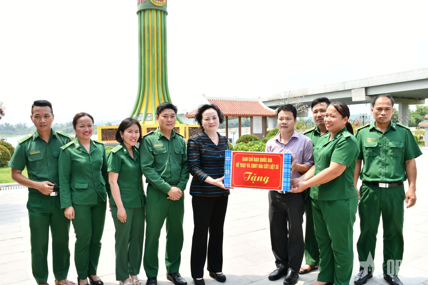 Phó thủ tướng Phạm Thị Thanh Trà trao quà tặng Tổng đội Thanh niên xung phong xây dựng kinh tế tỉnh Quảng Trị - Đơn vị quản lý Di tích lịch sử Bến phà II Long Đại.
