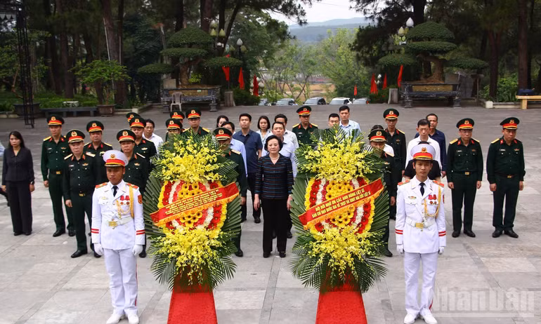 Phó Thủ tướng Phạm Thị Thanh Trà và đoàn công tác kính cẩn nghiêng mình, dành phút mặc niệm tưởng nhớ các Anh hùng liệt sĩ tại Nghĩa trang liệt sĩ quốc gia Đường 9.