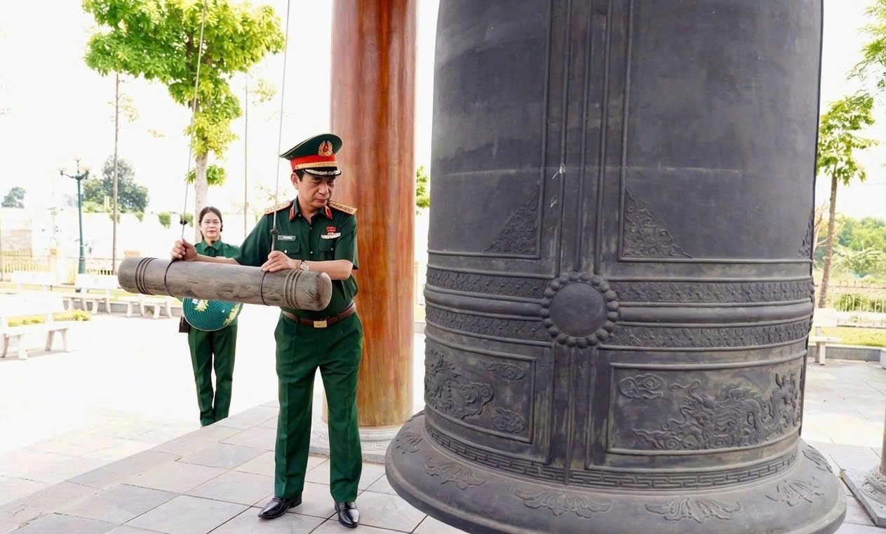 Phó Thủ tướng, Bộ trưởng Bộ Quốc phòng Phan Văn Giang thỉnh chuông tưởng niệm 60 liệt sĩ Thanh niên xung phong.