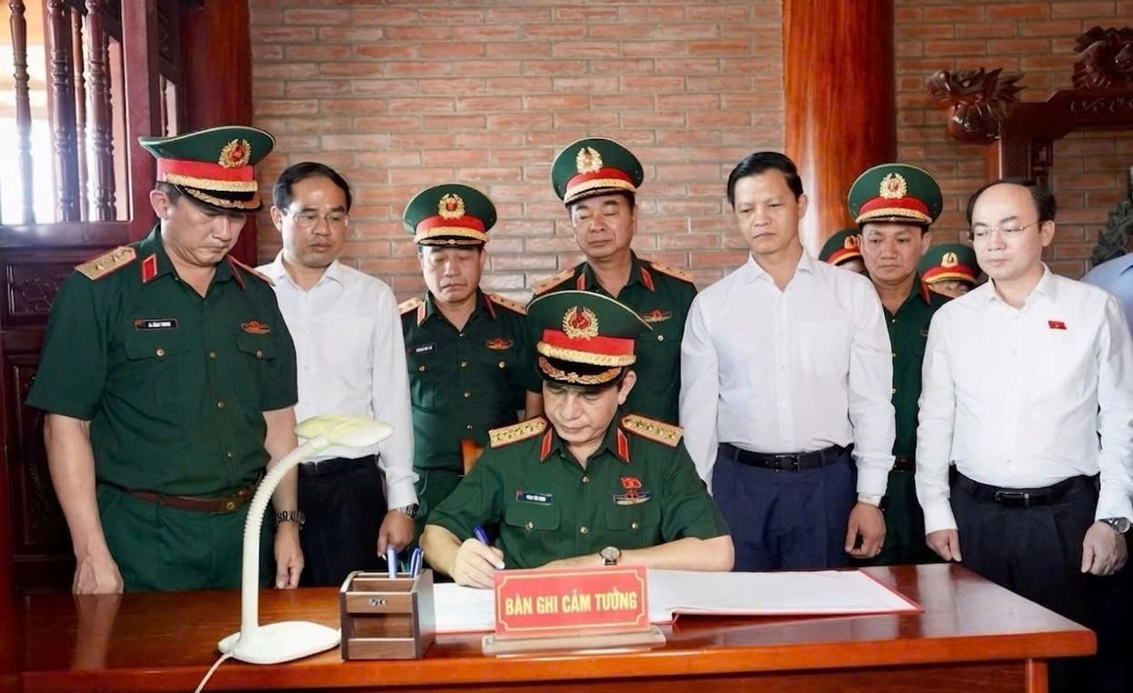 Đại tướng Phan Văn Giang ghi cảm tưởng tại Khu di tích lịch sử Quốc gia Đại đội Thanh niên xung phong 915, Đội 91 Bắc Thái.
