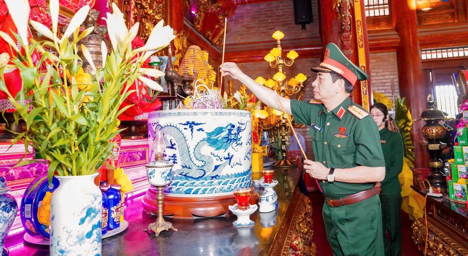 Phó Thủ tướng, Bộ trưởng Bộ Quốc phòng Phan Văn Giang dâng hương tưởng niệm các Anh hùng liệt sĩ tại Di tích lịch sử quốc gia Đại đội 915, Đội 91 Bắc Thái