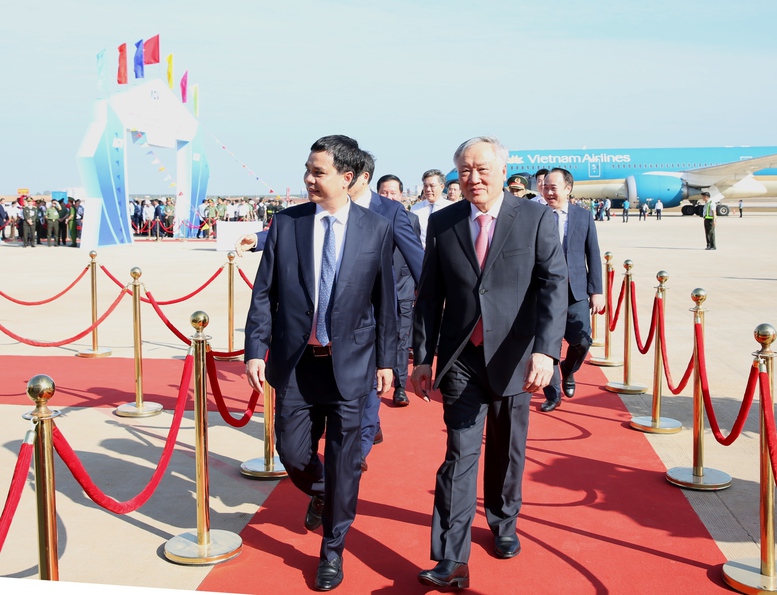 Tiếp đó, tại điểm cầu Cảng hàng không Quốc tế Long Thành, Phó Thủ tướng Thường trực Chính phủ Nguyễn Hòa Bình đã dự lễ khánh thành các công trình và khai trương chuyến bay đầu tiên tại Cảng hàng không quốc tế Long Thành.
