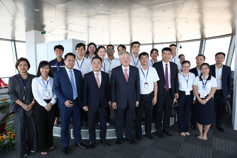 Phó Thủ tướng Thường trực Nguyễn Hòa Bình với cán bộ, nhân viên đài kiểm soát không lưu tại Sân bay Long Thành - Ảnh: VGP/Nguyễn Hoàng