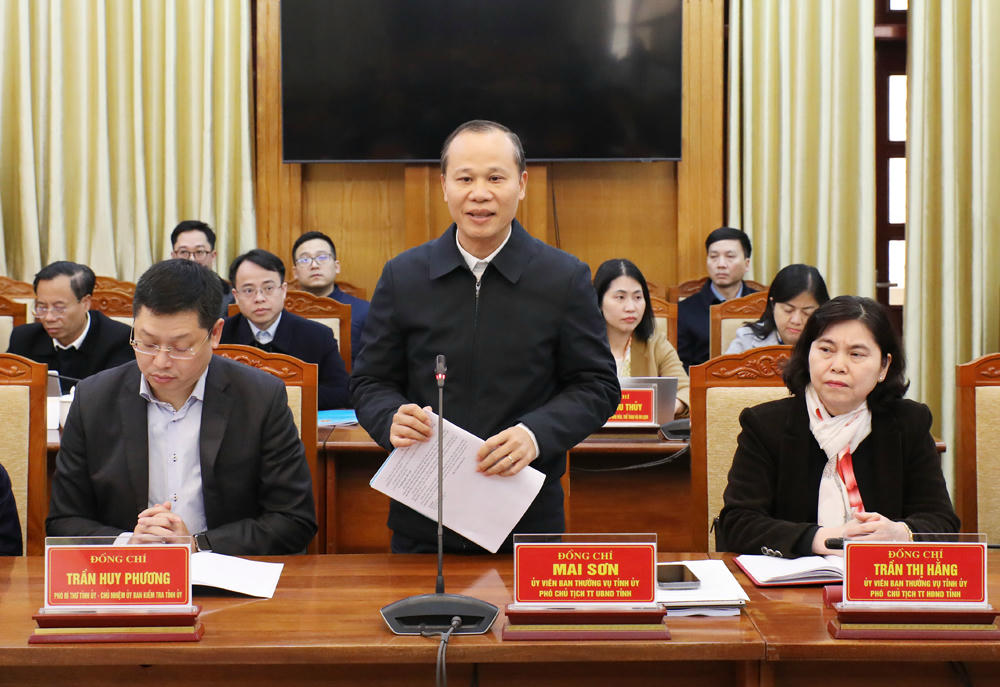 Phó Chủ tịch Thường trực UBND tỉnh Mai Sơn báo cáo tại buổi làm việc.