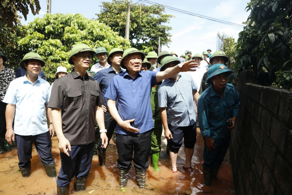 Phó Thủ tướng Thường trực Nguyễn Hòa Bình kiểm tra công tác khắc phục hậu quả bão lũ tại Bắc Ninh.