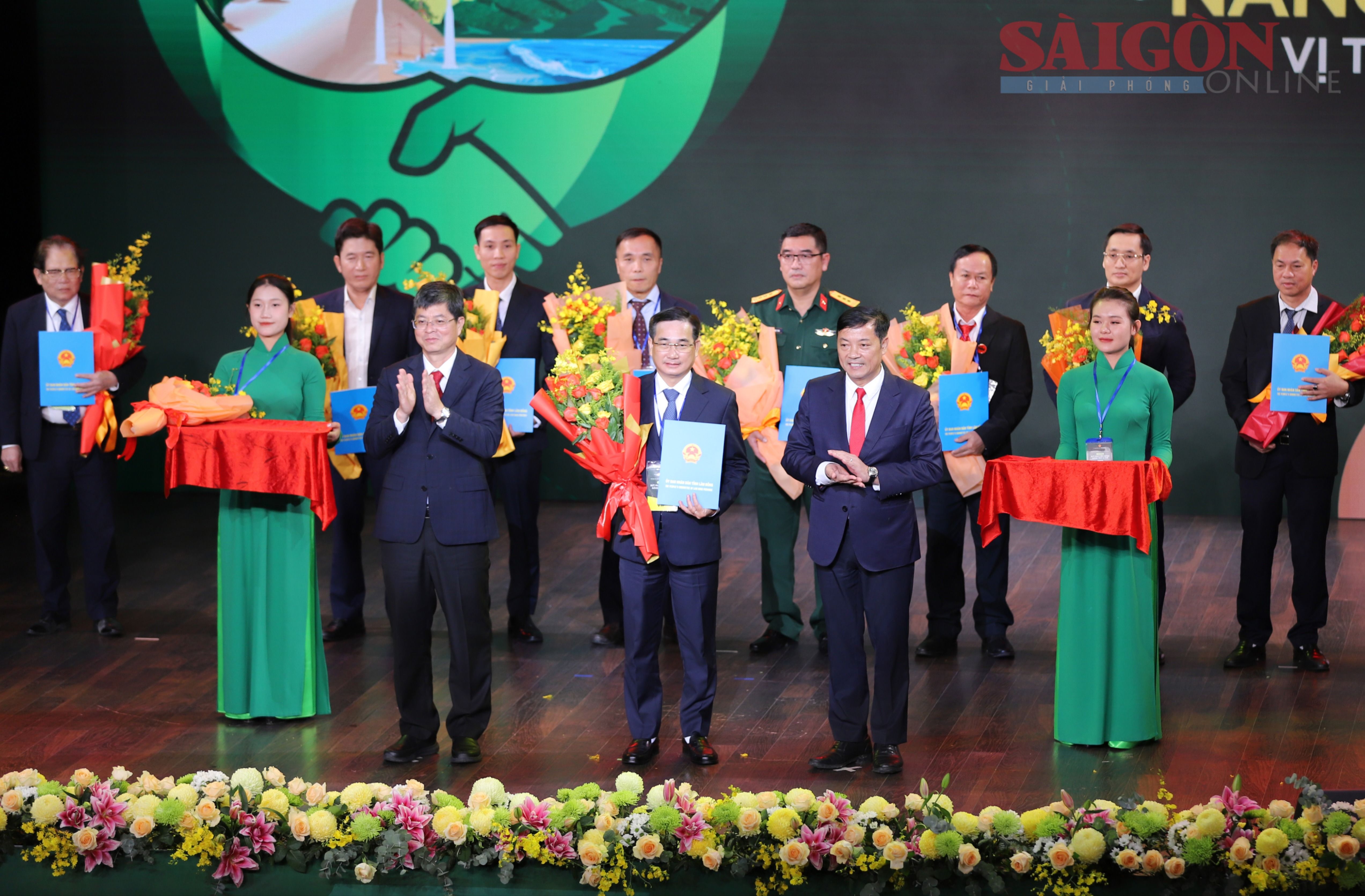 Bí thư Tỉnh ủy Lâm Đồng Y Thanh Hà Niê Kđăm và Chủ tịch UBND tỉnh Lâm Đồng Hồ Văn Mười trao giấy chứng nhận đăng ký đầu tư cho các dự án tổng vốn đầu tư lên tới 33.000 tỷ đồng. Ảnh: ĐOÀN KIÊN