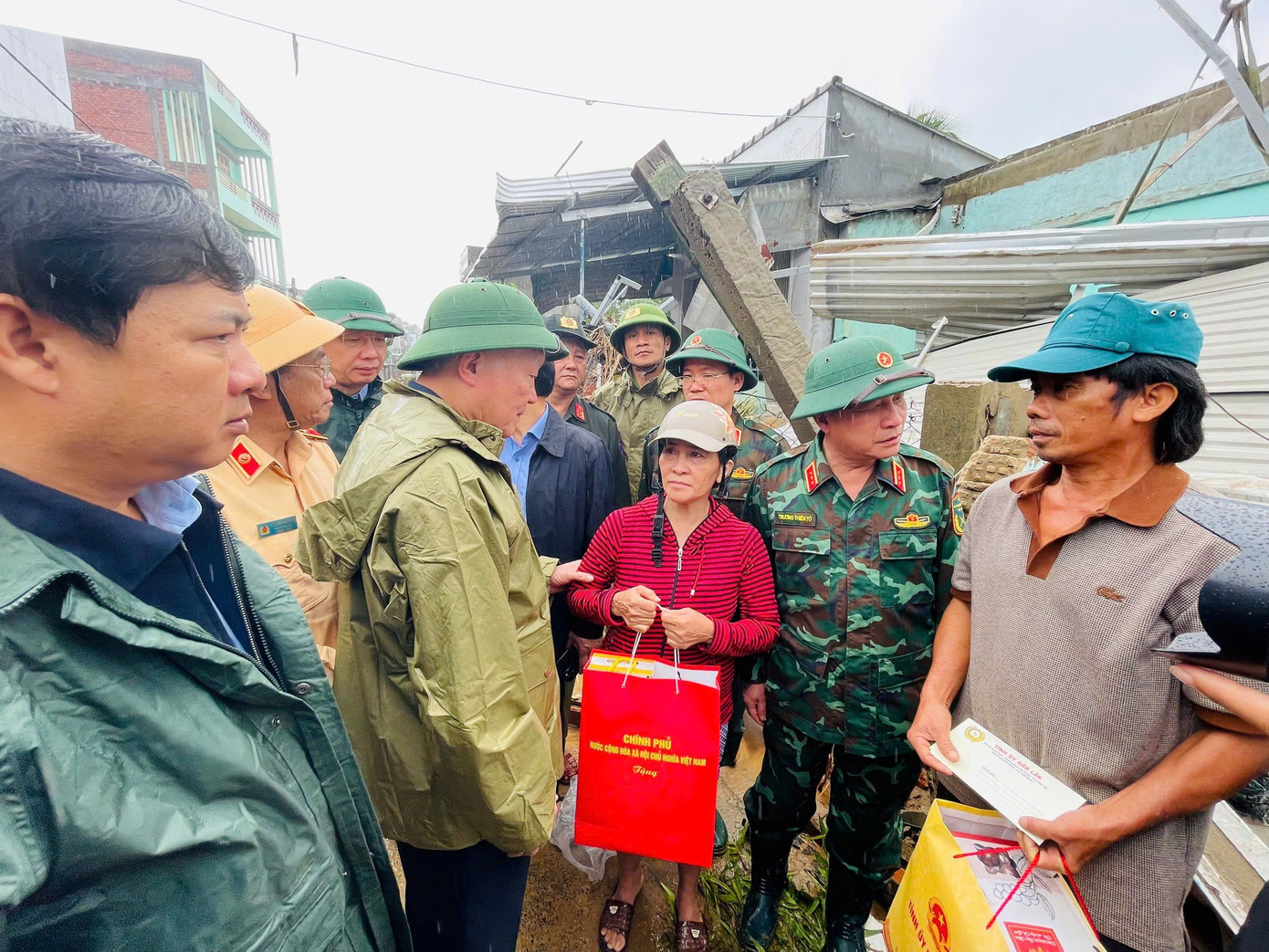 Tại xã Tuy An Tây, Phó Thủ tướng Thường trực Chính phủ Nguyễn Hòa Bình trực tiếp khảo sát hiện trường, động viên lực lượng quân đội và chính quyền địa phương đang khẩn trương hỗ trợ người dân dọn dẹp nhà cửa, thu gom bùn đất và đảm bảo vệ sinh môi trường.